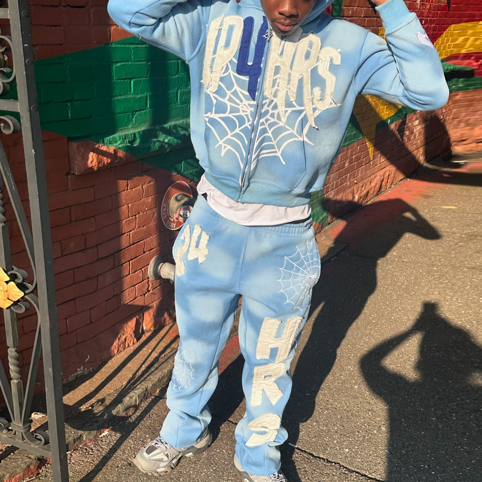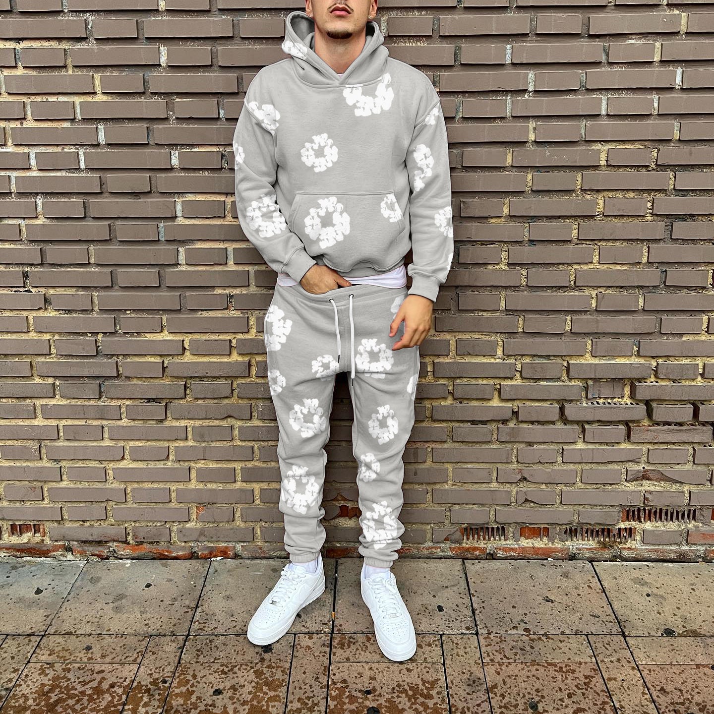 Alphabet & Pentagram Print Hoodie Sweatpants Two Piece Set