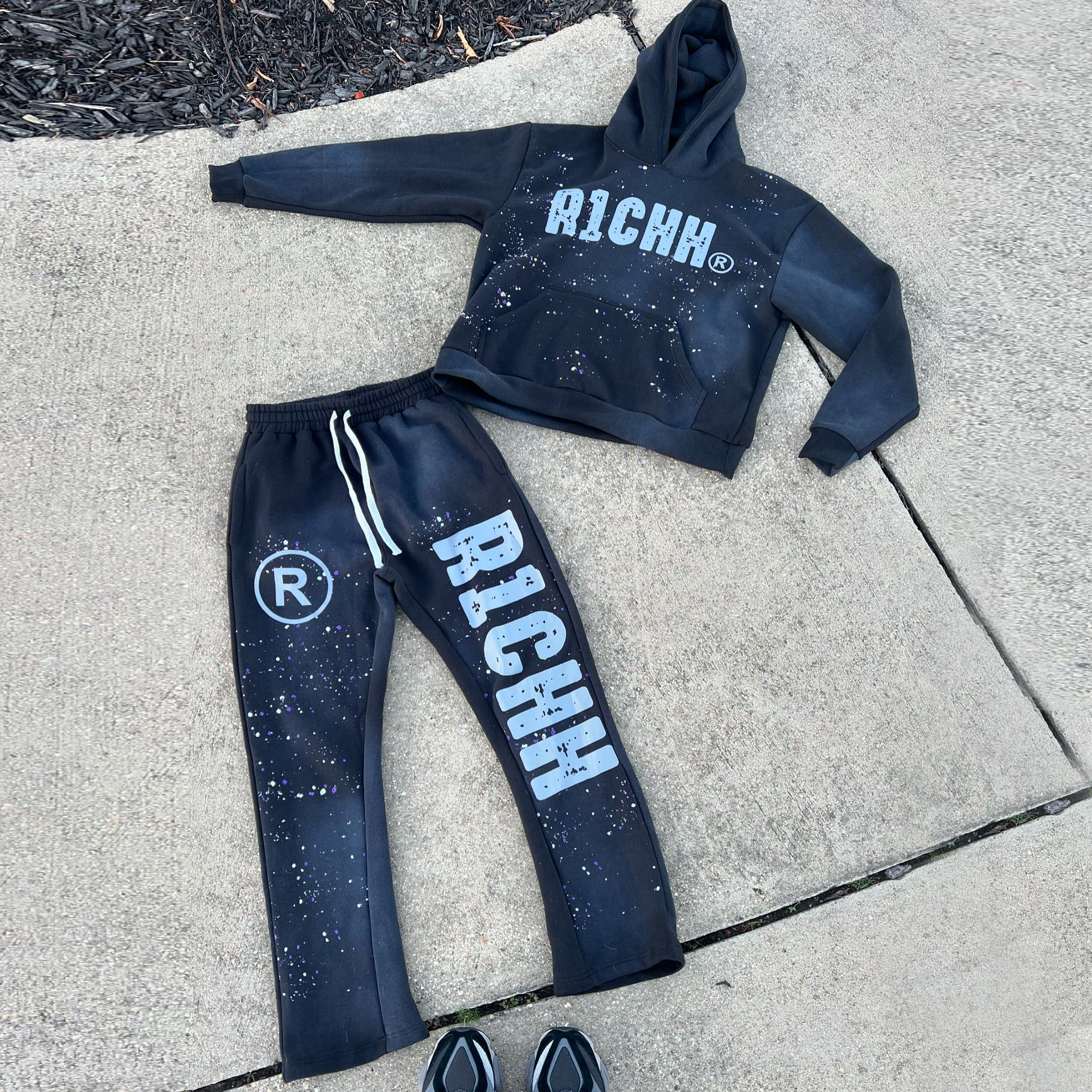 Fashion casual style ink-splashed print hoodie set