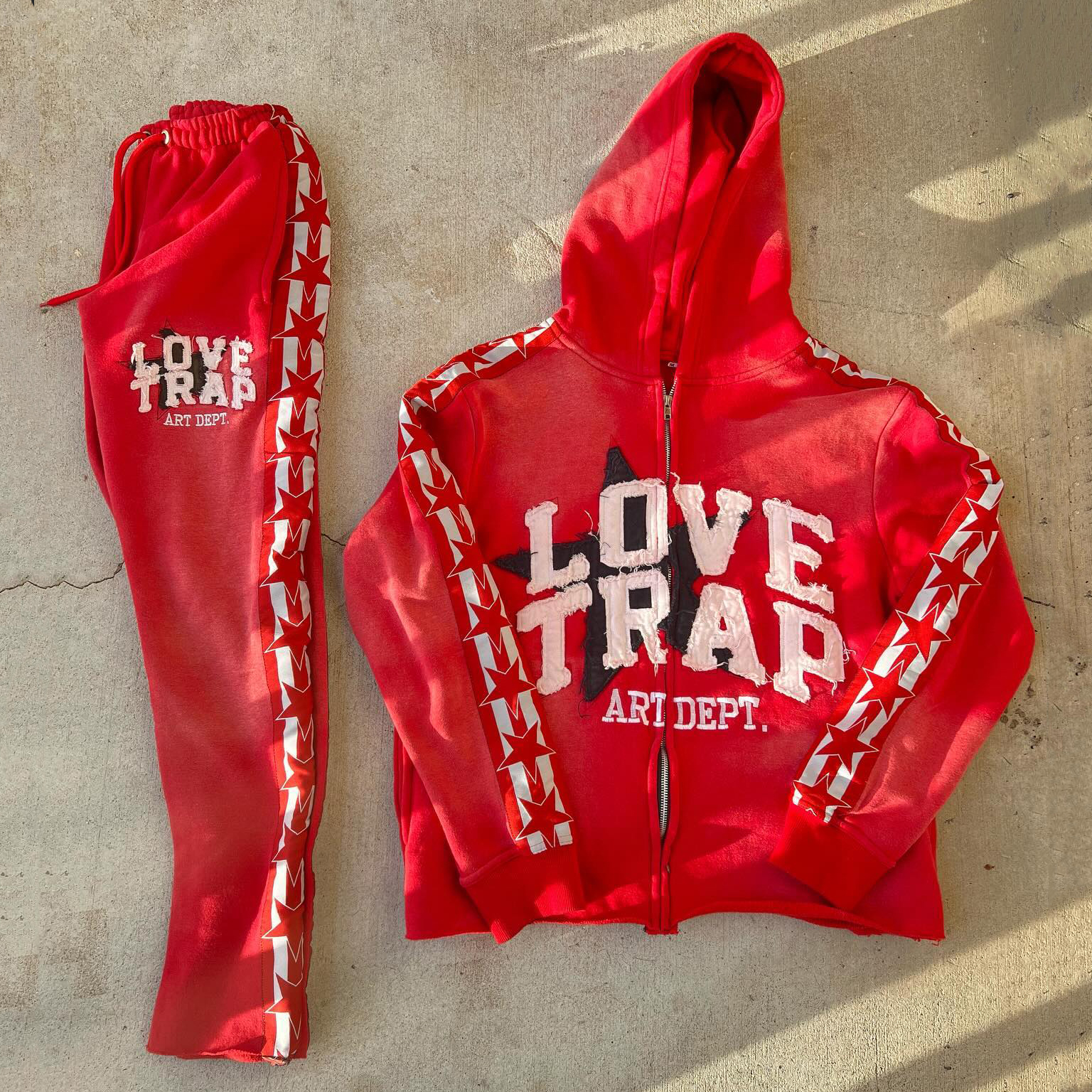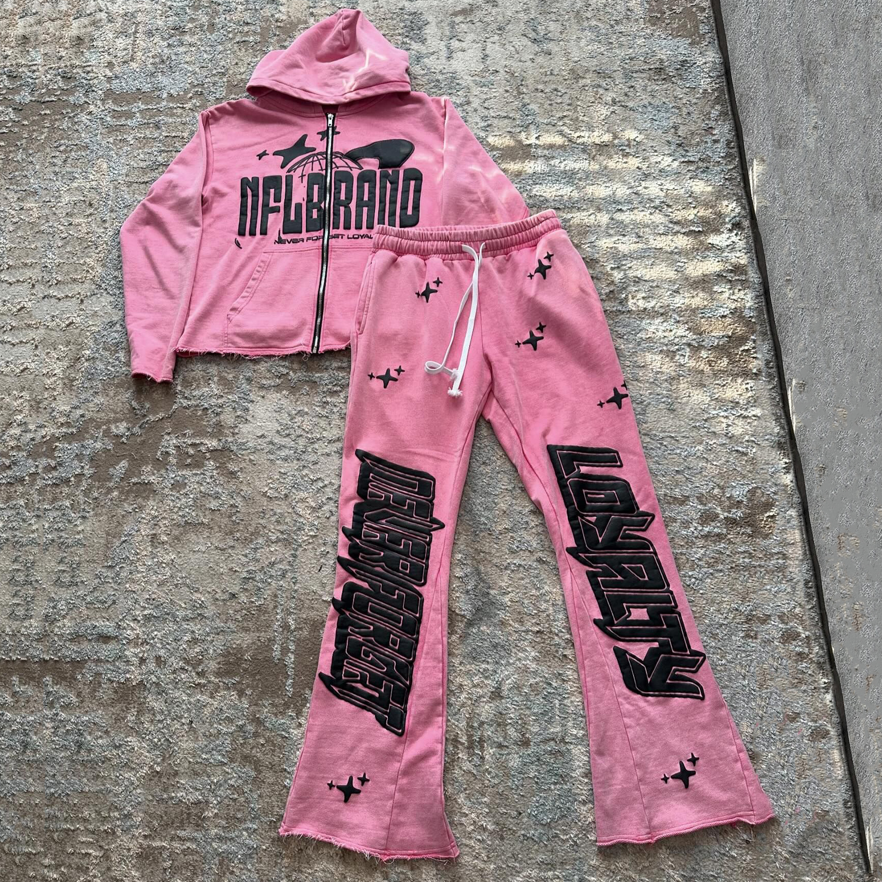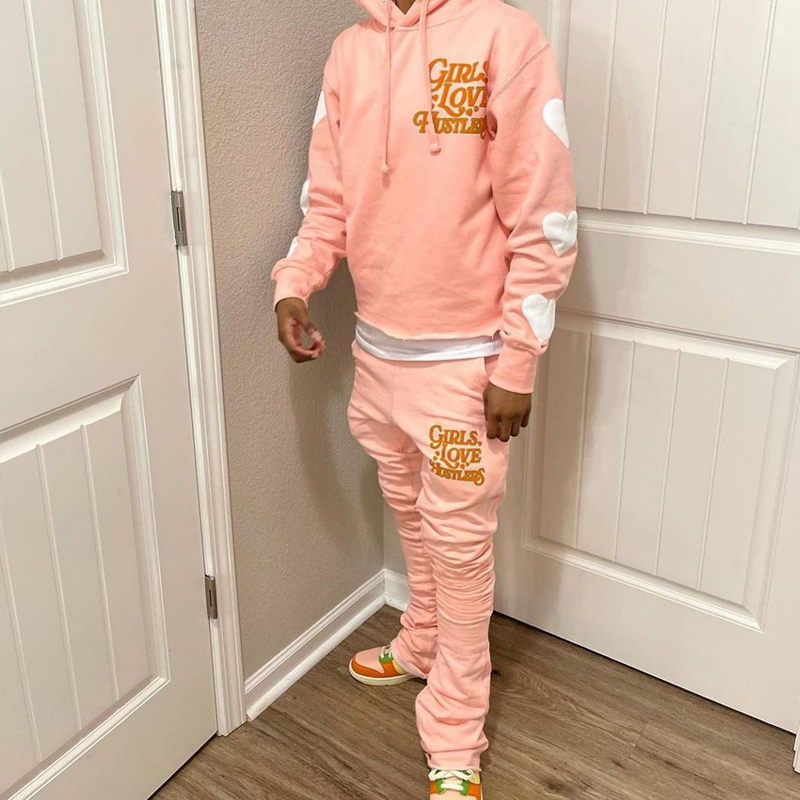 Personalized Street Style Applique Zip-Up Hoodie Set