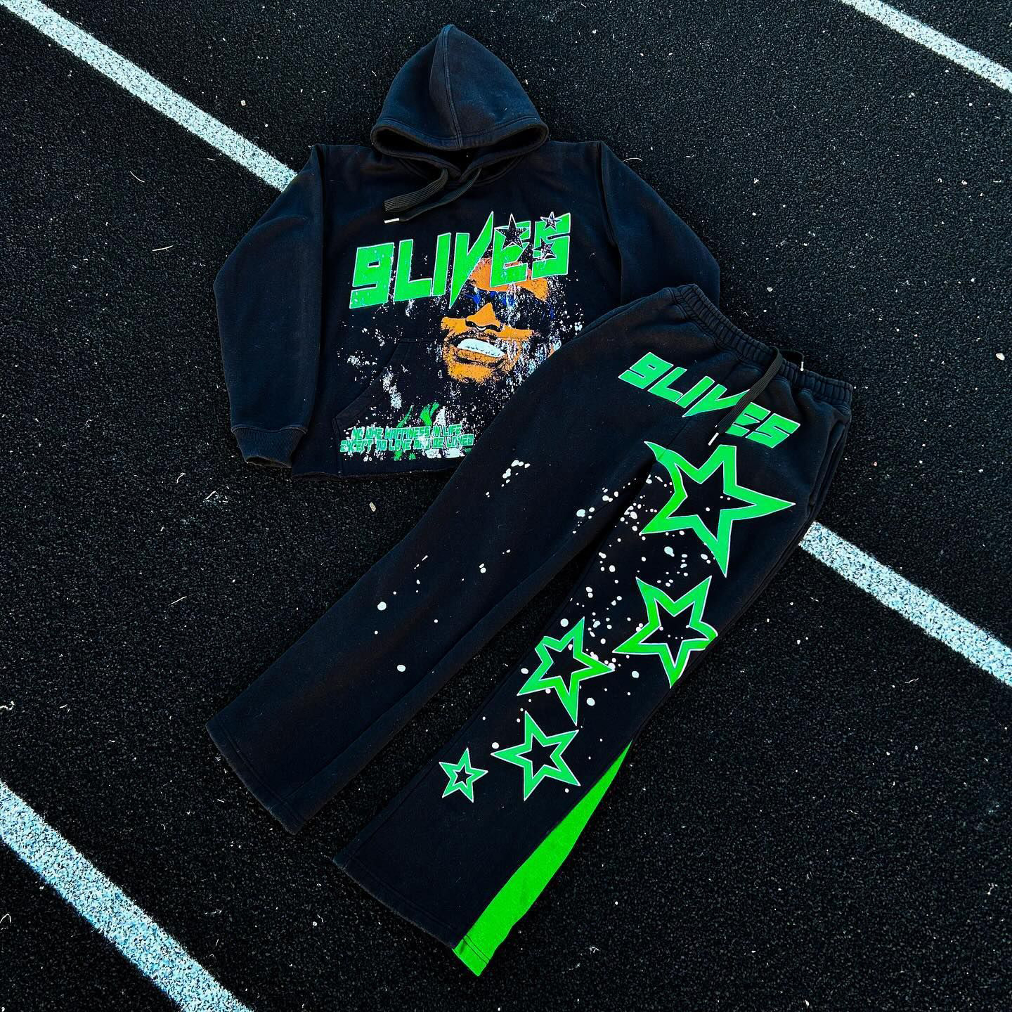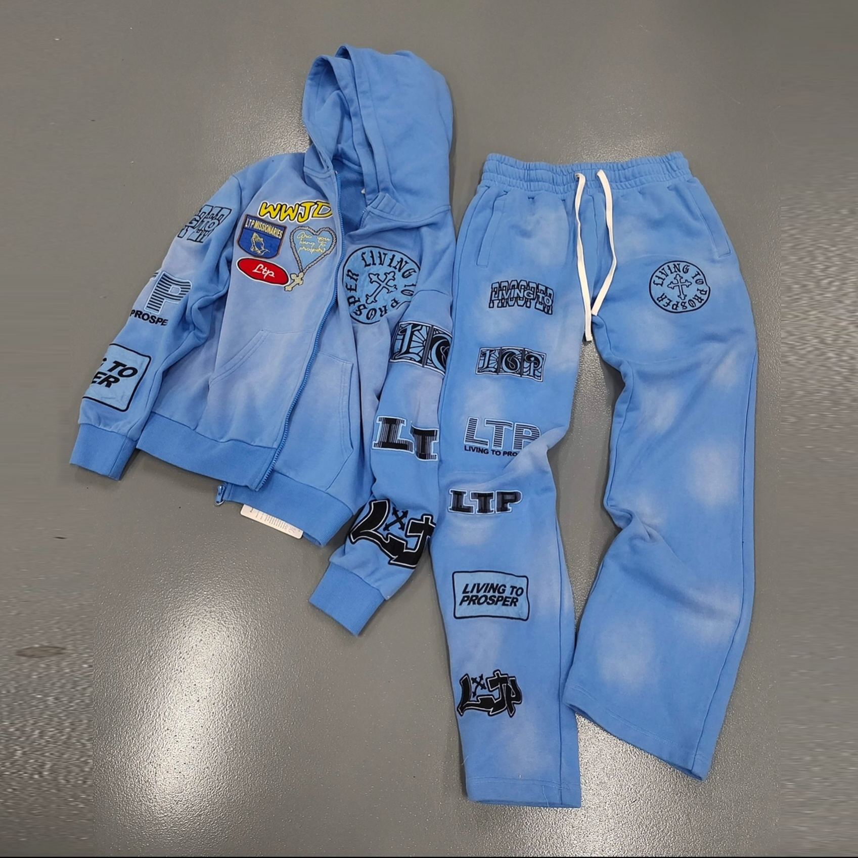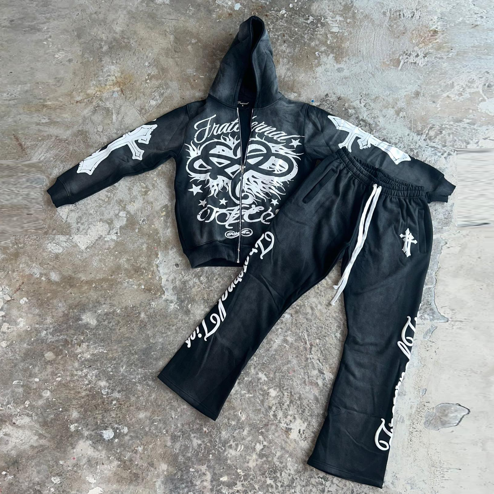 Personalized Street Style Applique Zip-Up Hoodie Set