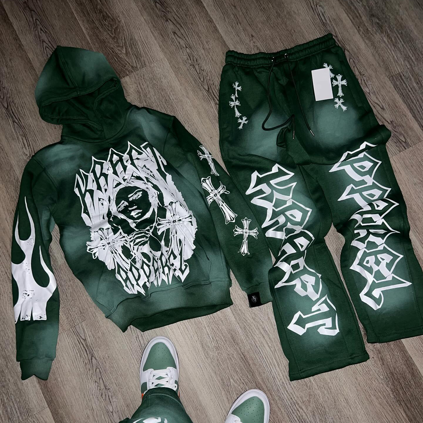 print casual street retro washed trousers and hoodie two-piece suit