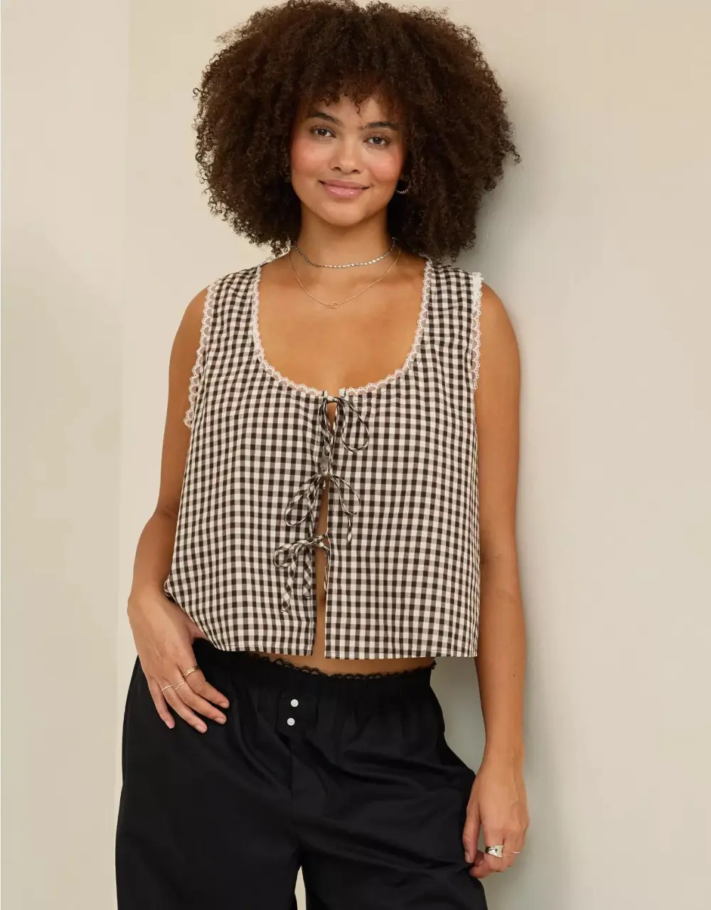 Aerie Off-Duty Poplin Tie Front Tank Top