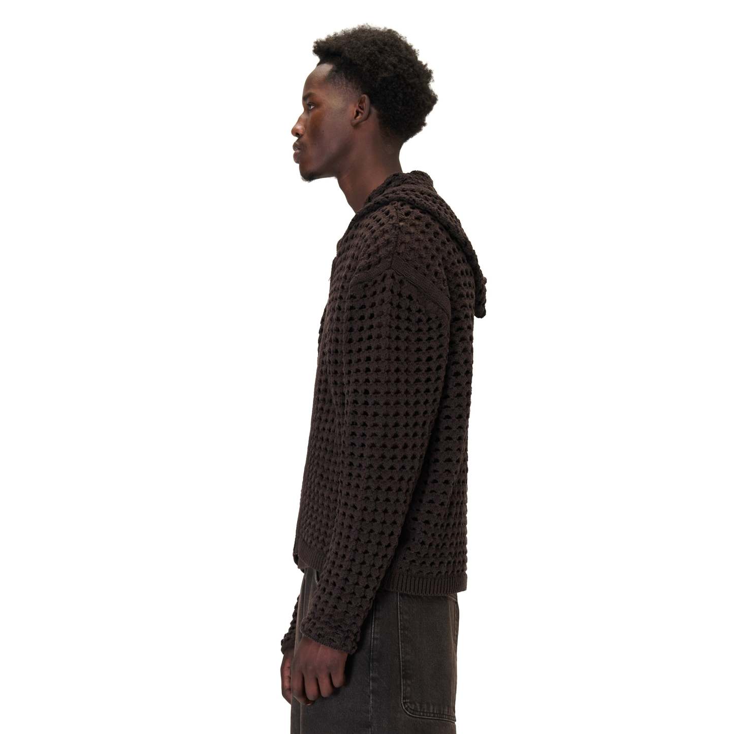 aziza crochet zip up brown