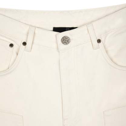 14,5oz denim / 100% cotton / embroidery on front panel / embroidered leather patch / custom button / wash inside out / fits true to size