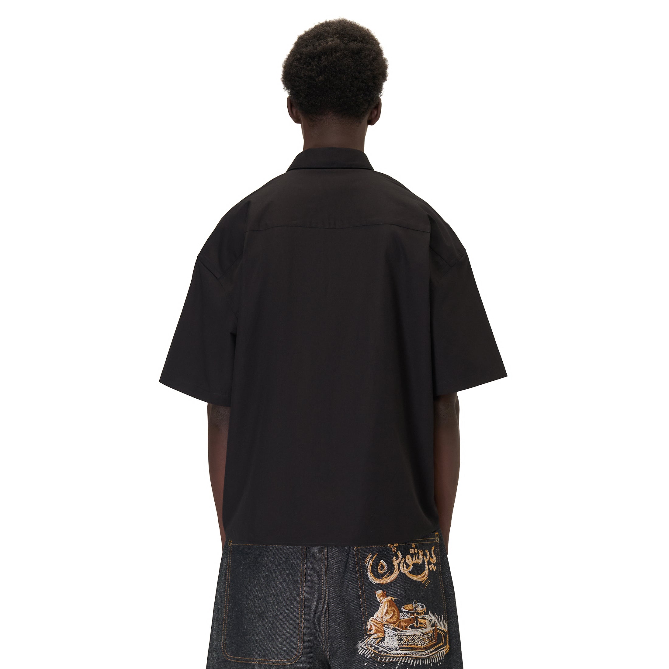 poplin fabric / 100% cotton / embroidery on front / custom buttons / curved hem / relaxed fit / fits true to size