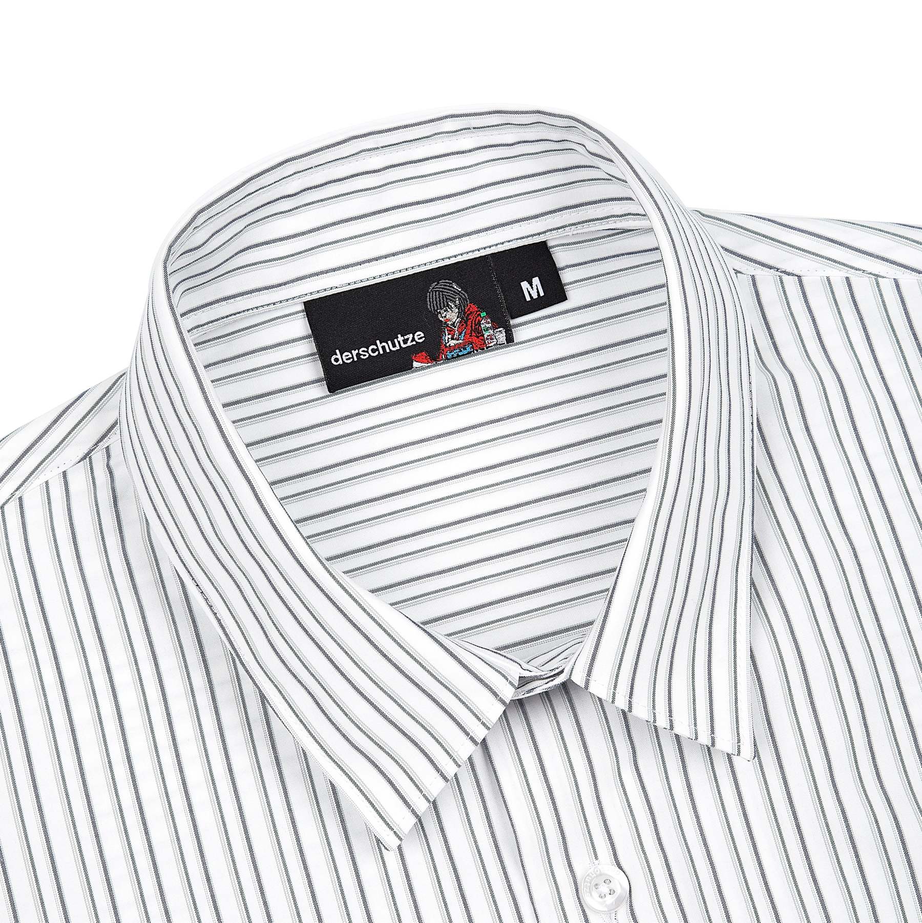 popline fabric / 57% cotton 43% polyester / embroidery on front / custom buttons / curved hem / relaxed fit / fits true to size