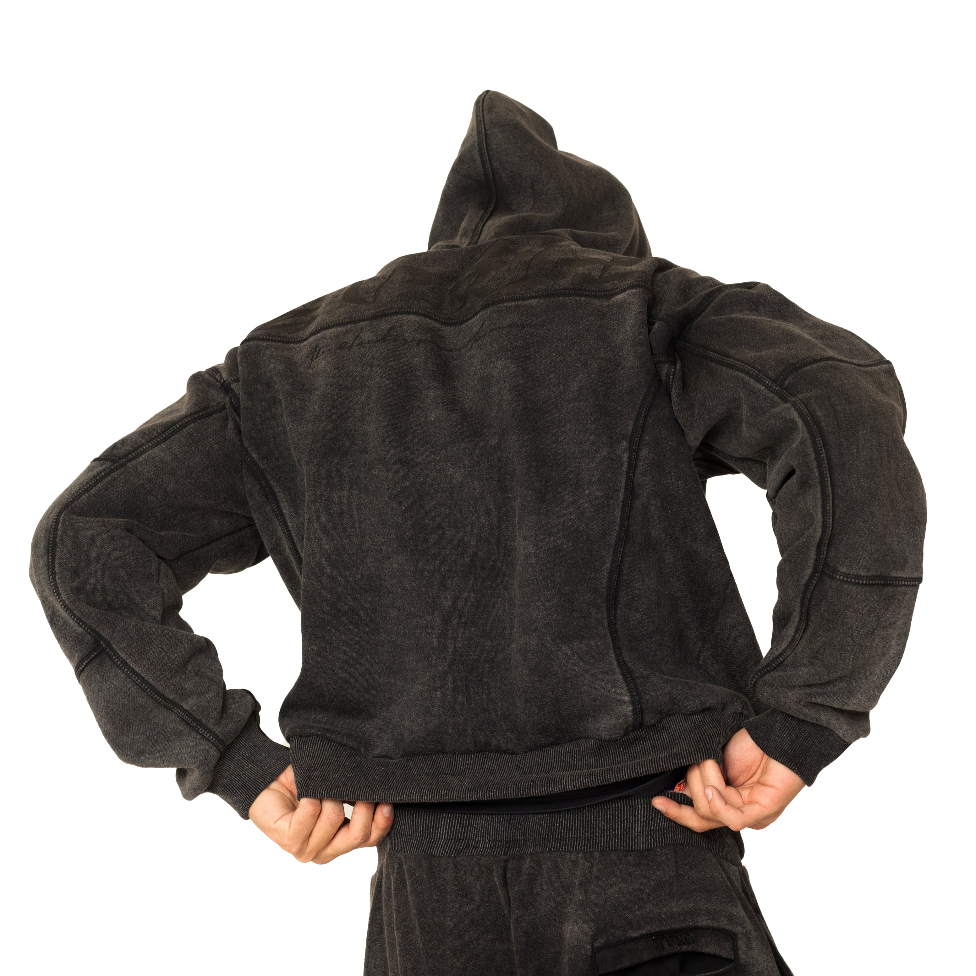 • PREMIUM WASHED FABRIC WITH PHYSIQUE-ACCENTUATING COSMETIC SEAMS