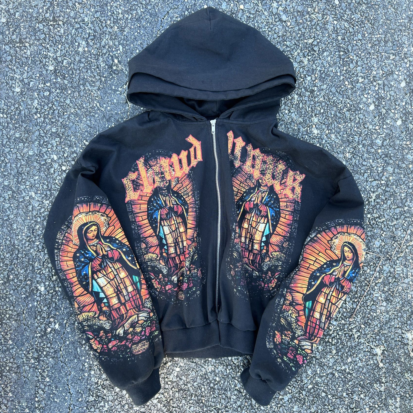 Blessed Soldier Print Long Sleeve Zipper Double Layer Hats Hoodies