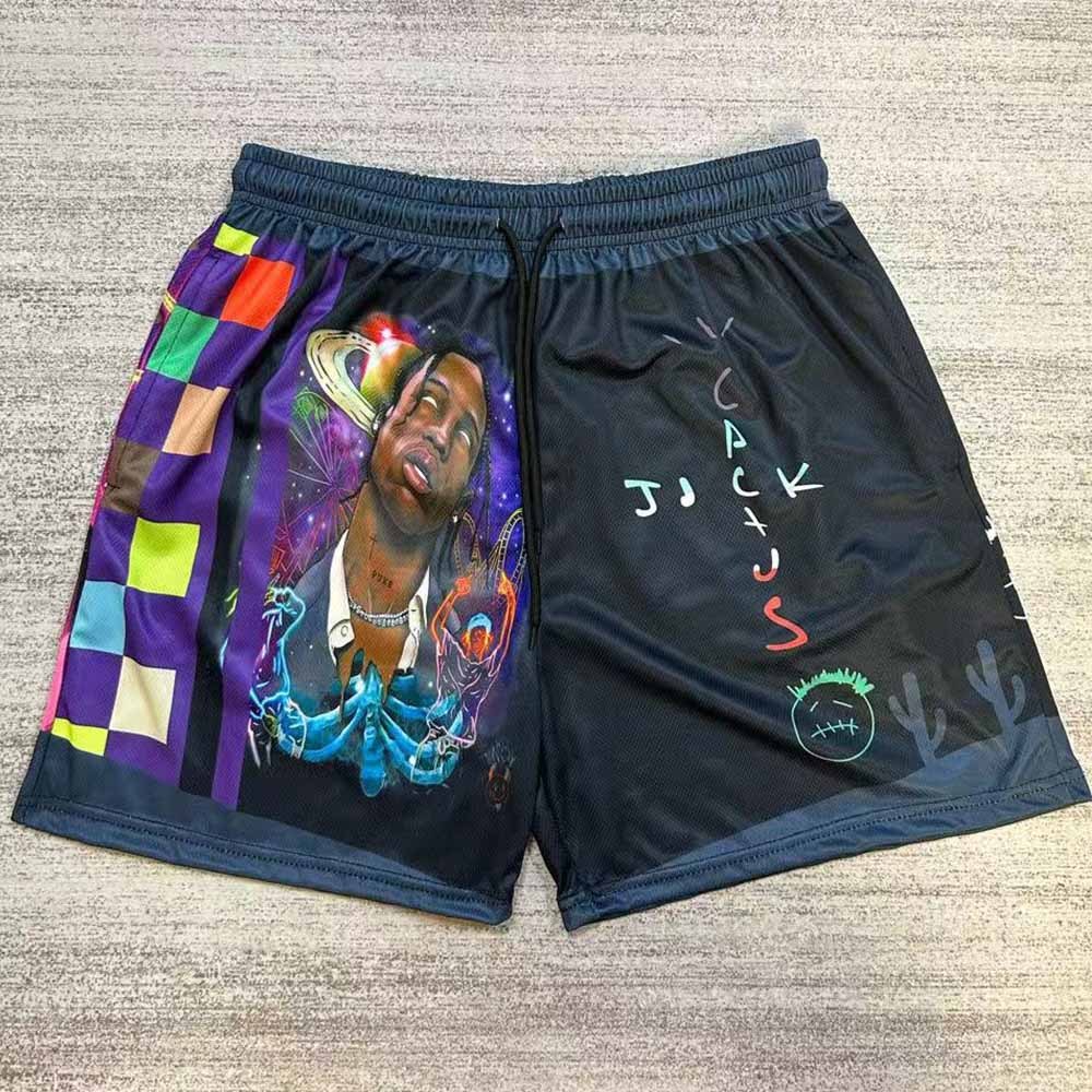 Contrast print mesh shorts
