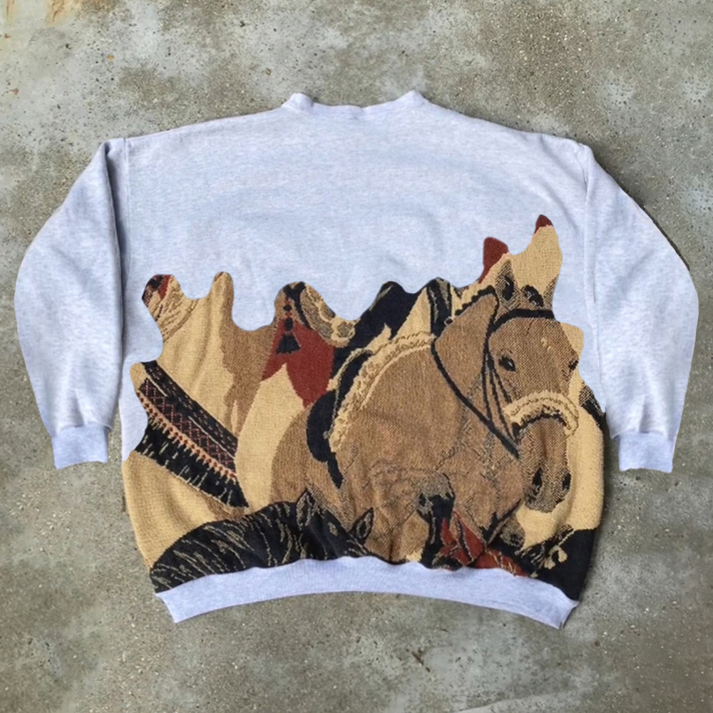 Cowboys Horse Print Long Sleeve Sweatshirt