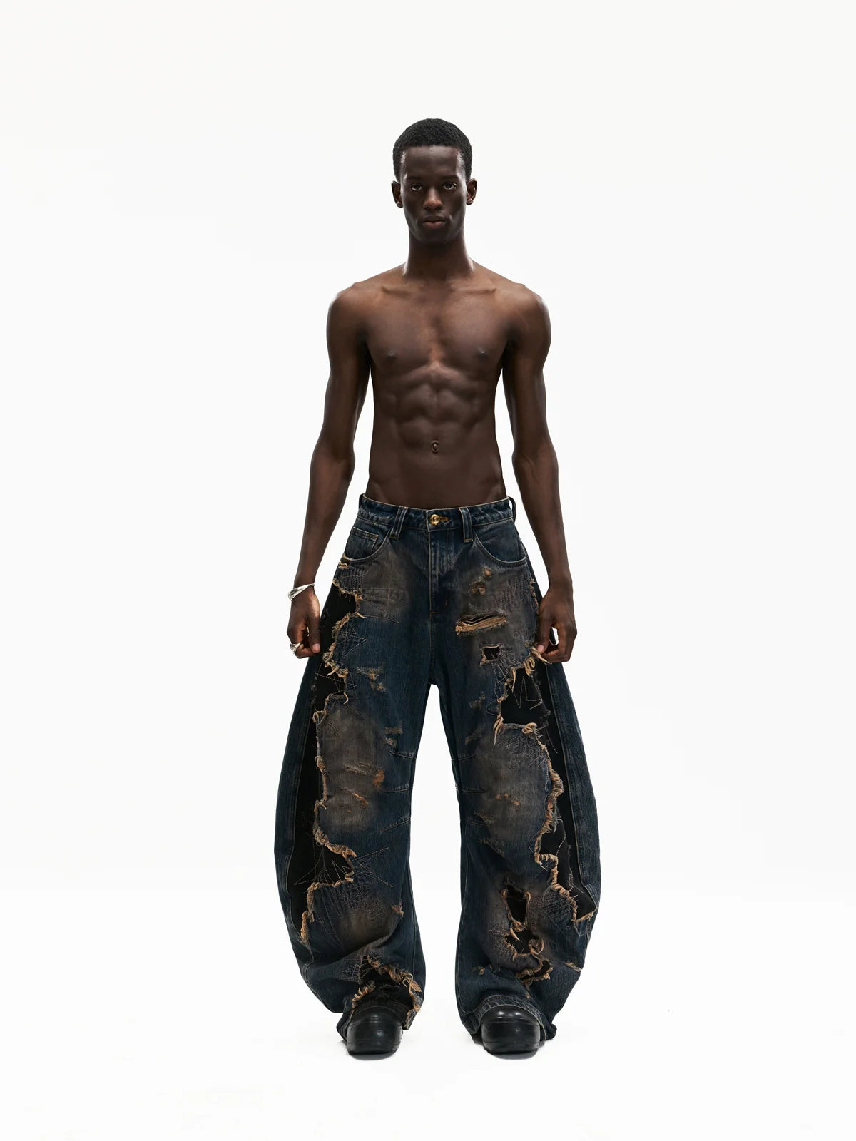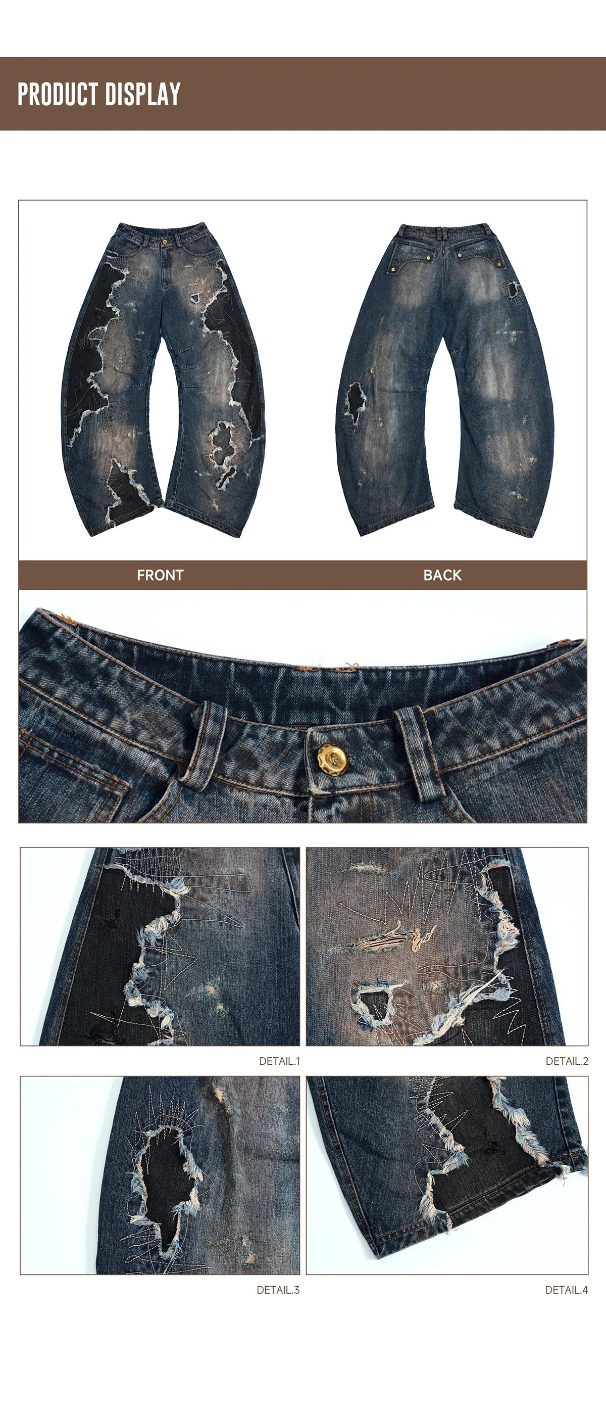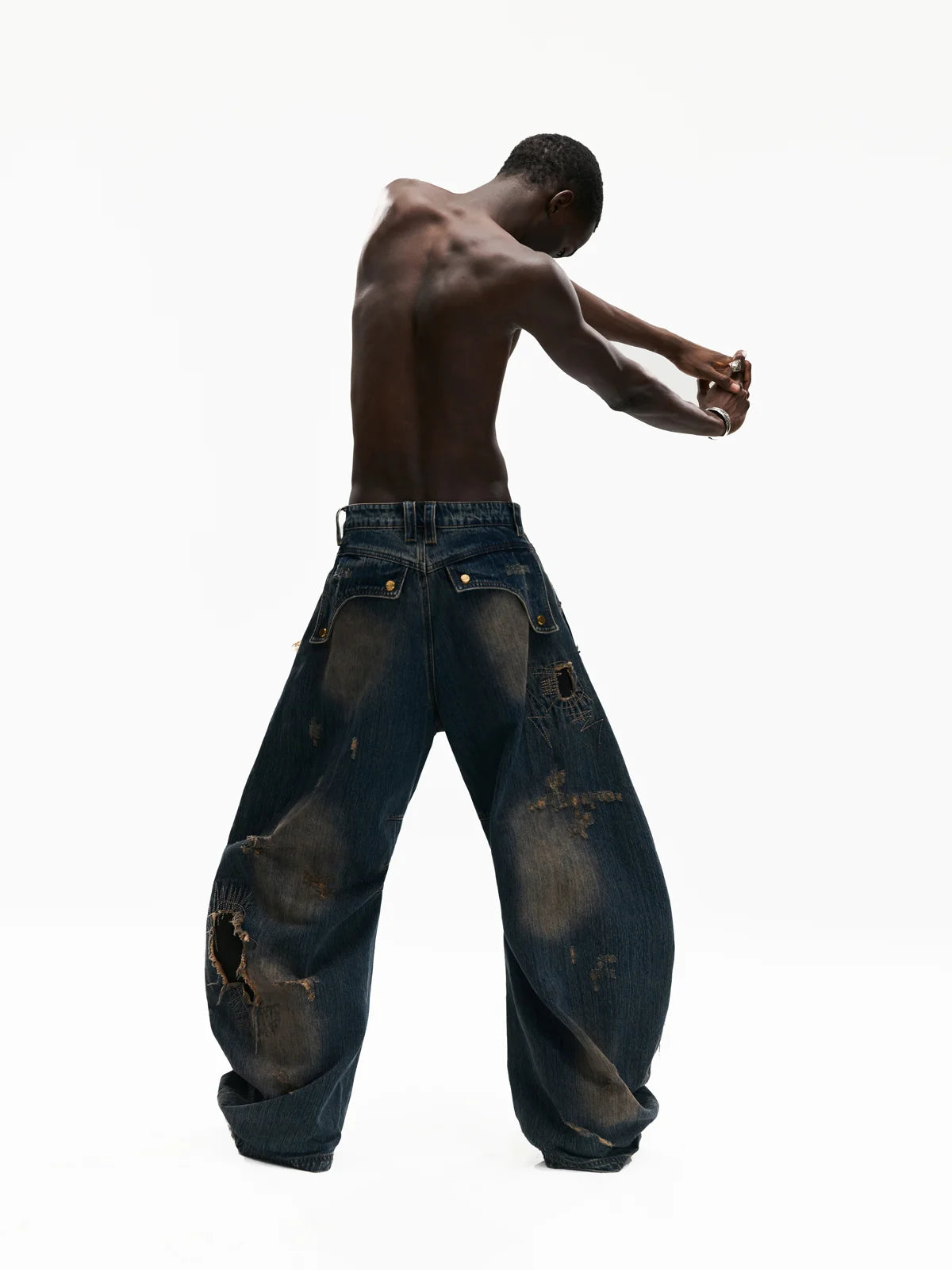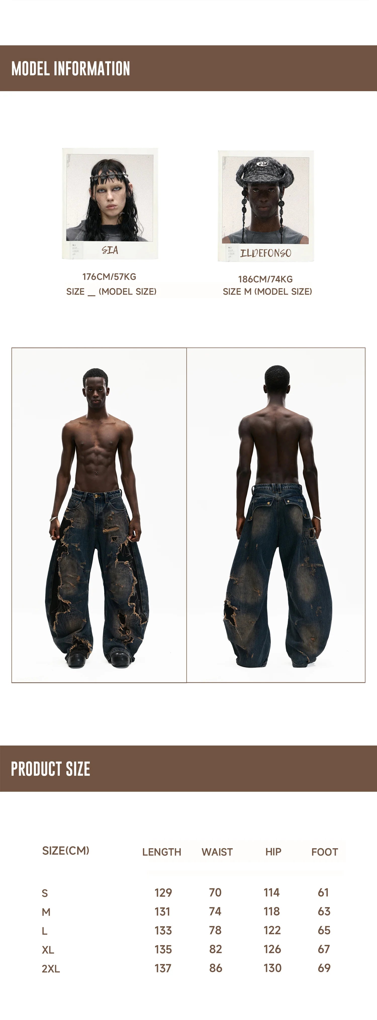 • Curved cut fit.• Unisex.• 100% Cotton.• Two tone denim.• Triple pleat detail.• Distressed wash.