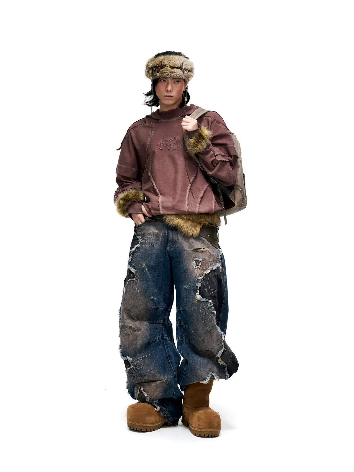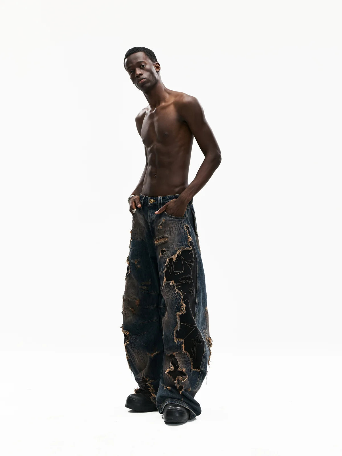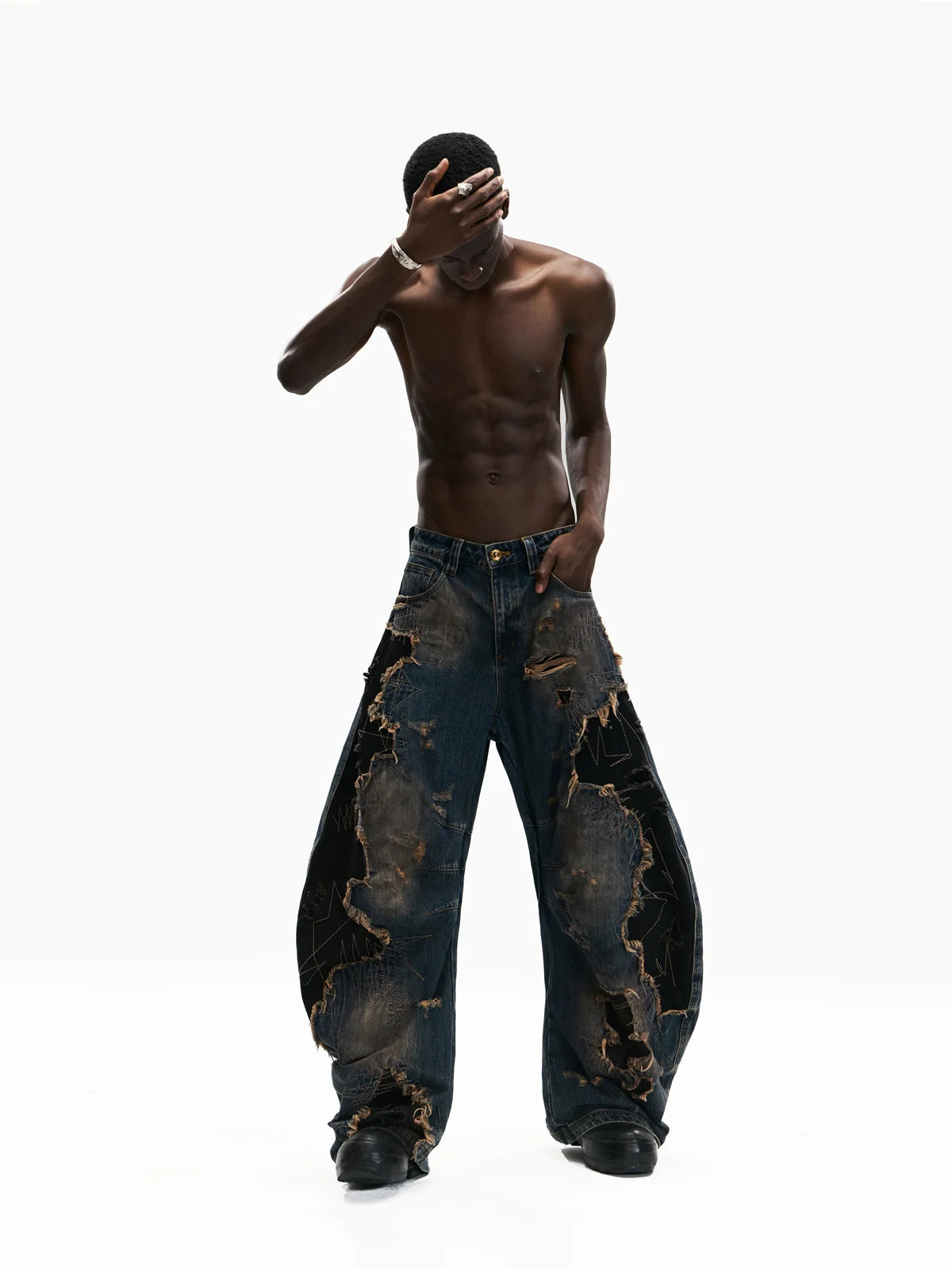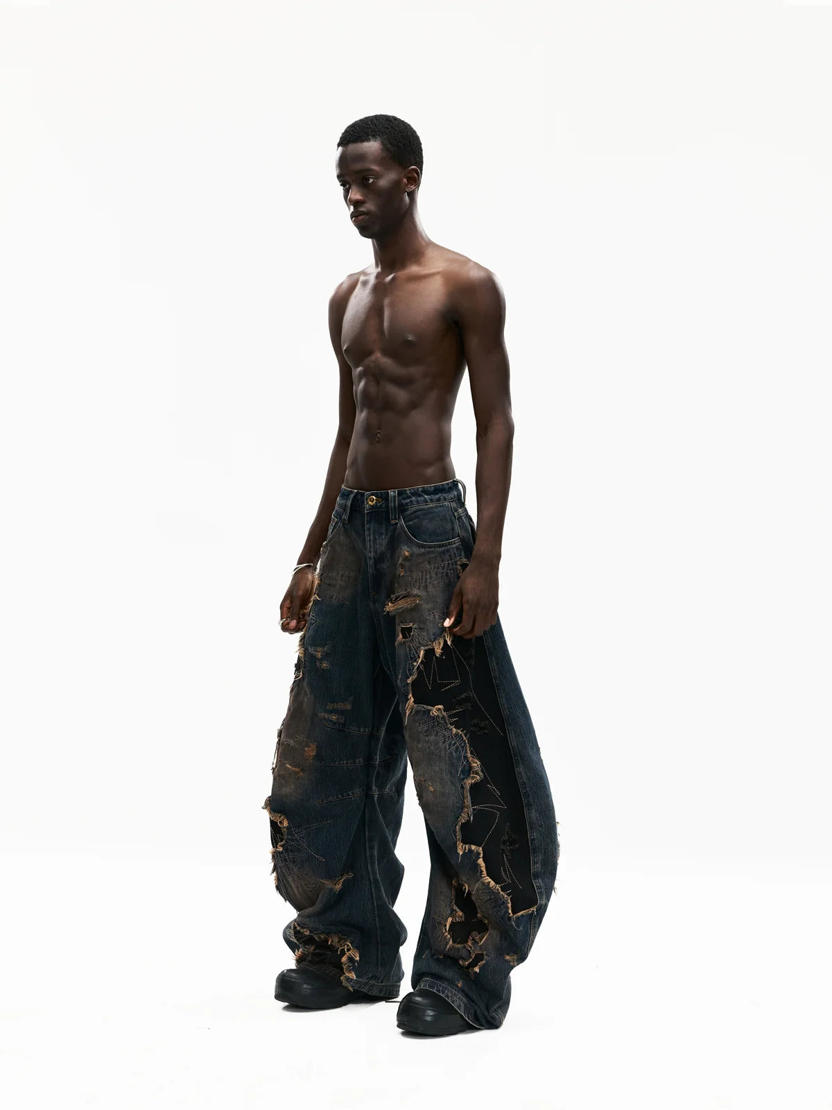 • Curved cut fit.• Unisex.• 100% Cotton.• Two tone denim.• Triple pleat detail.• Distressed wash.
