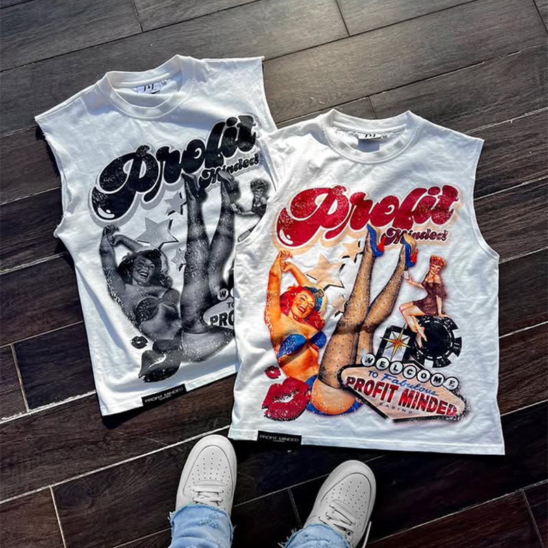 Custom graphic round neck sleeveless T-shirt
