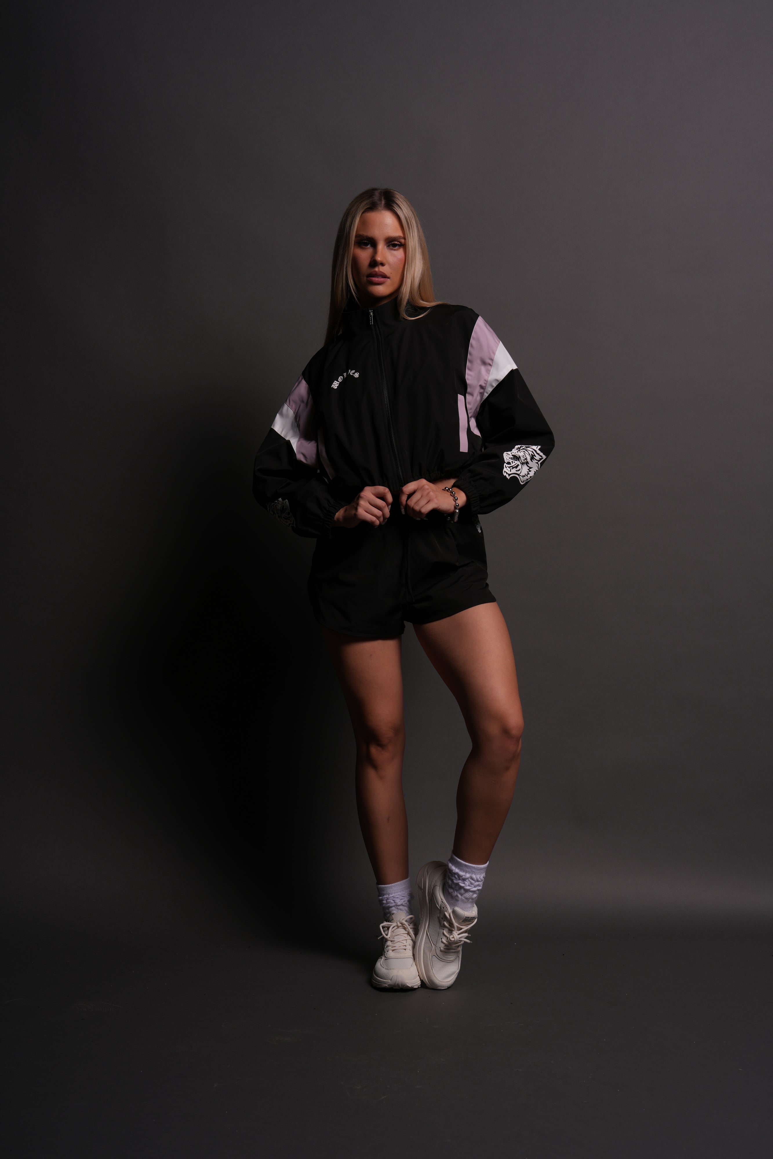 Death Becomes Her Nadia Track Jacket in Black/Purple Smoke/White