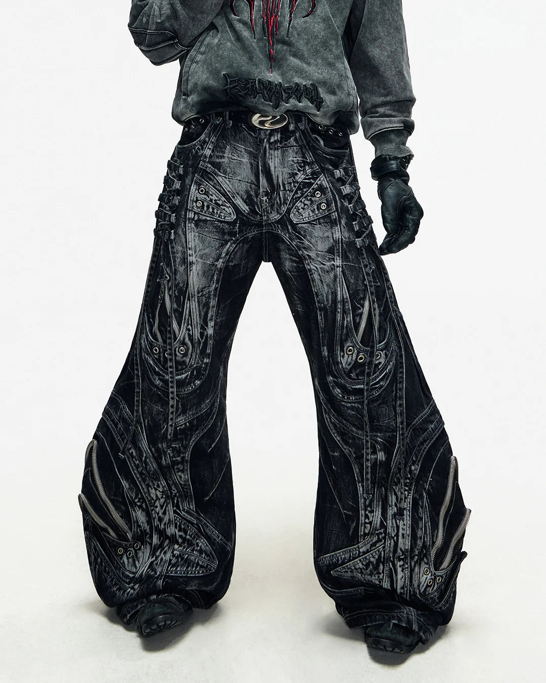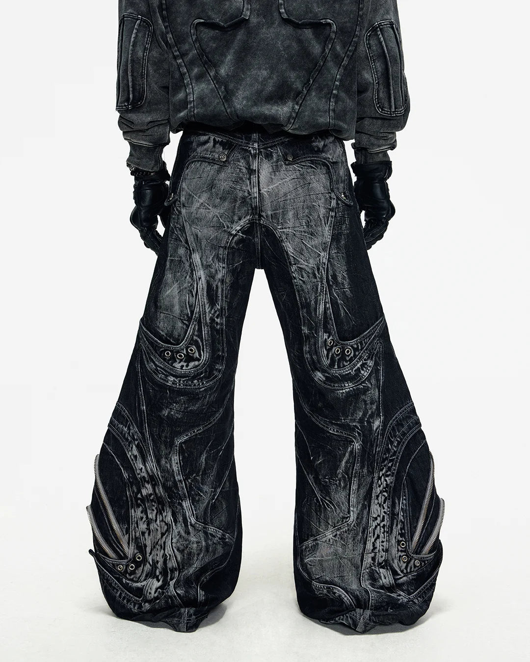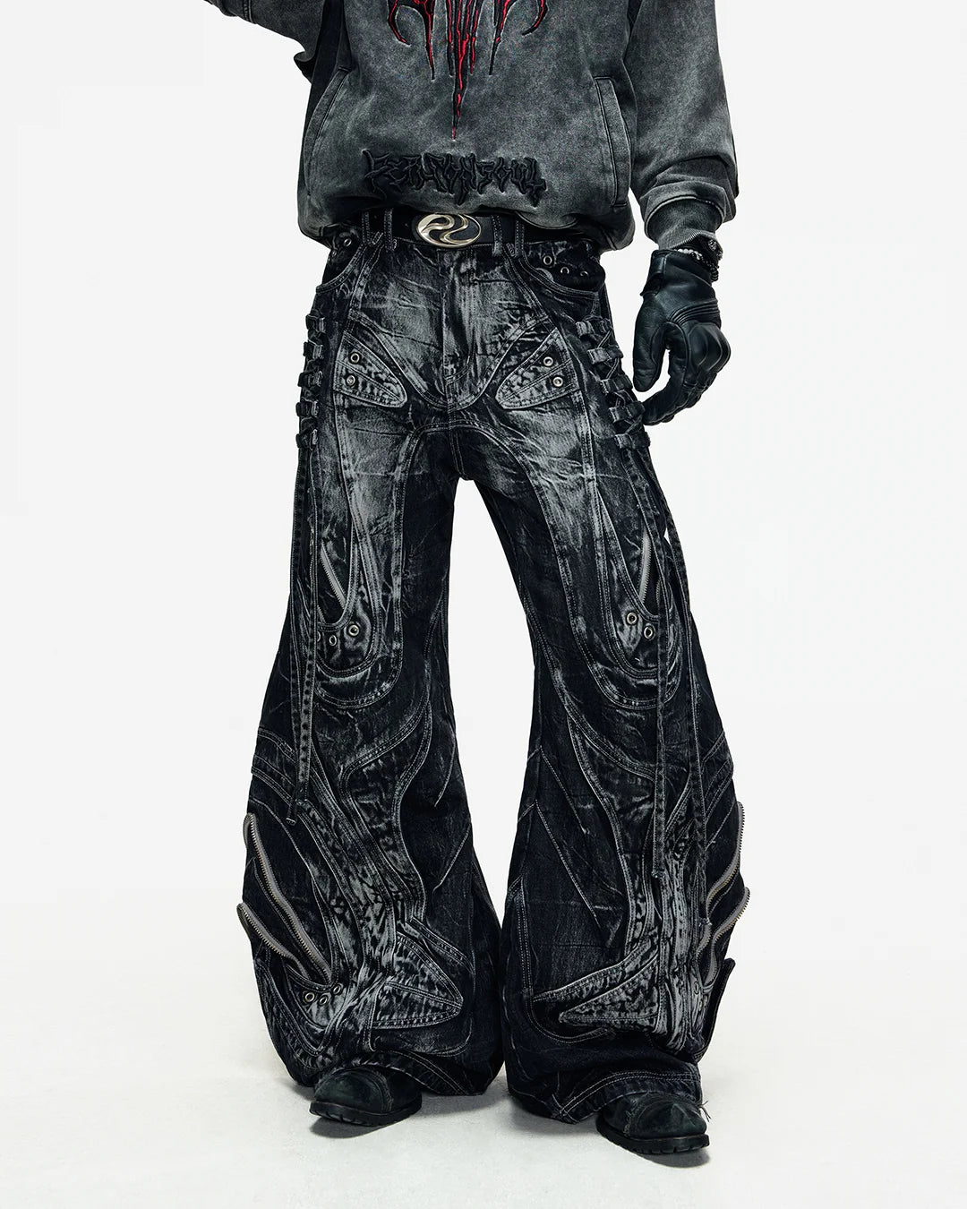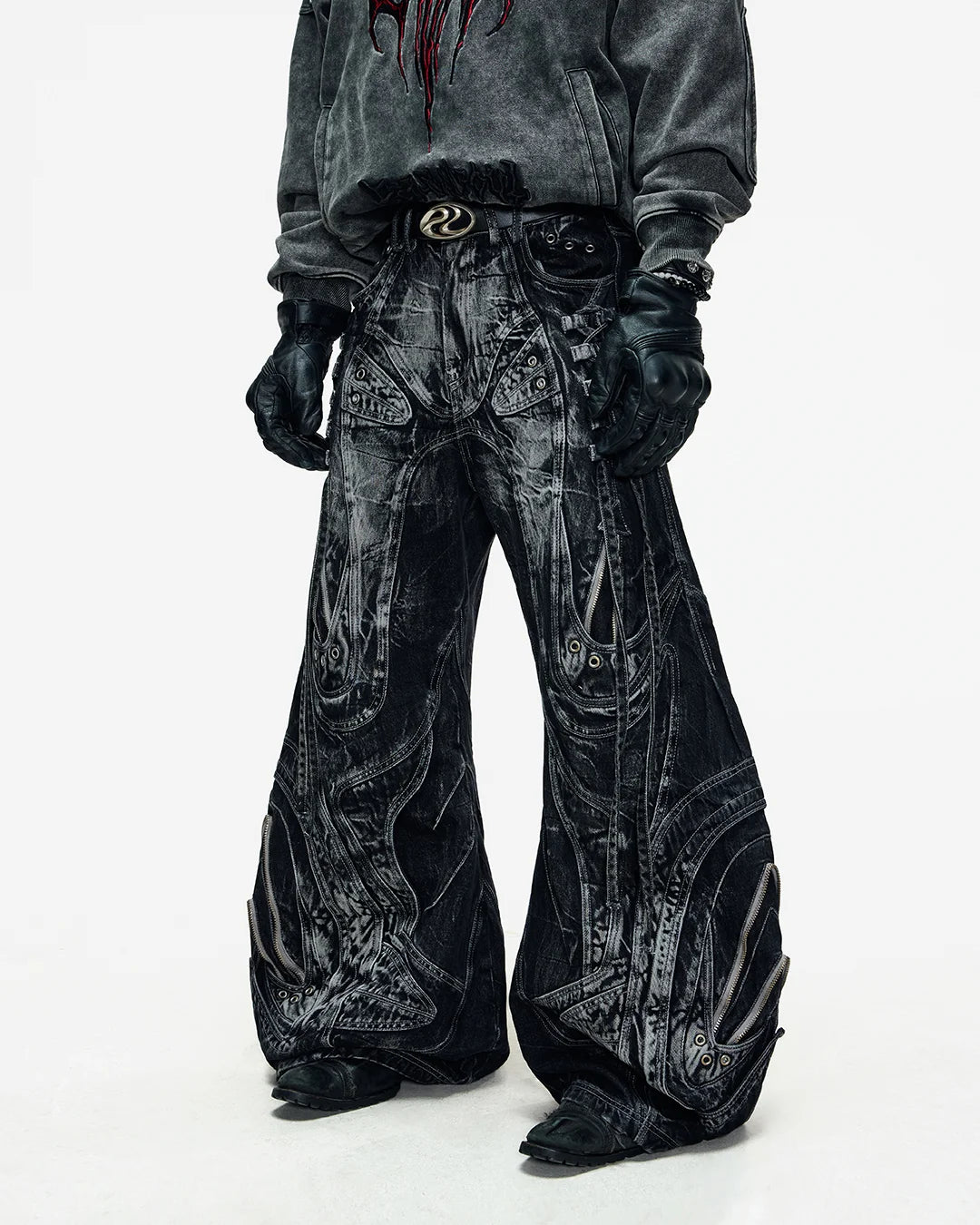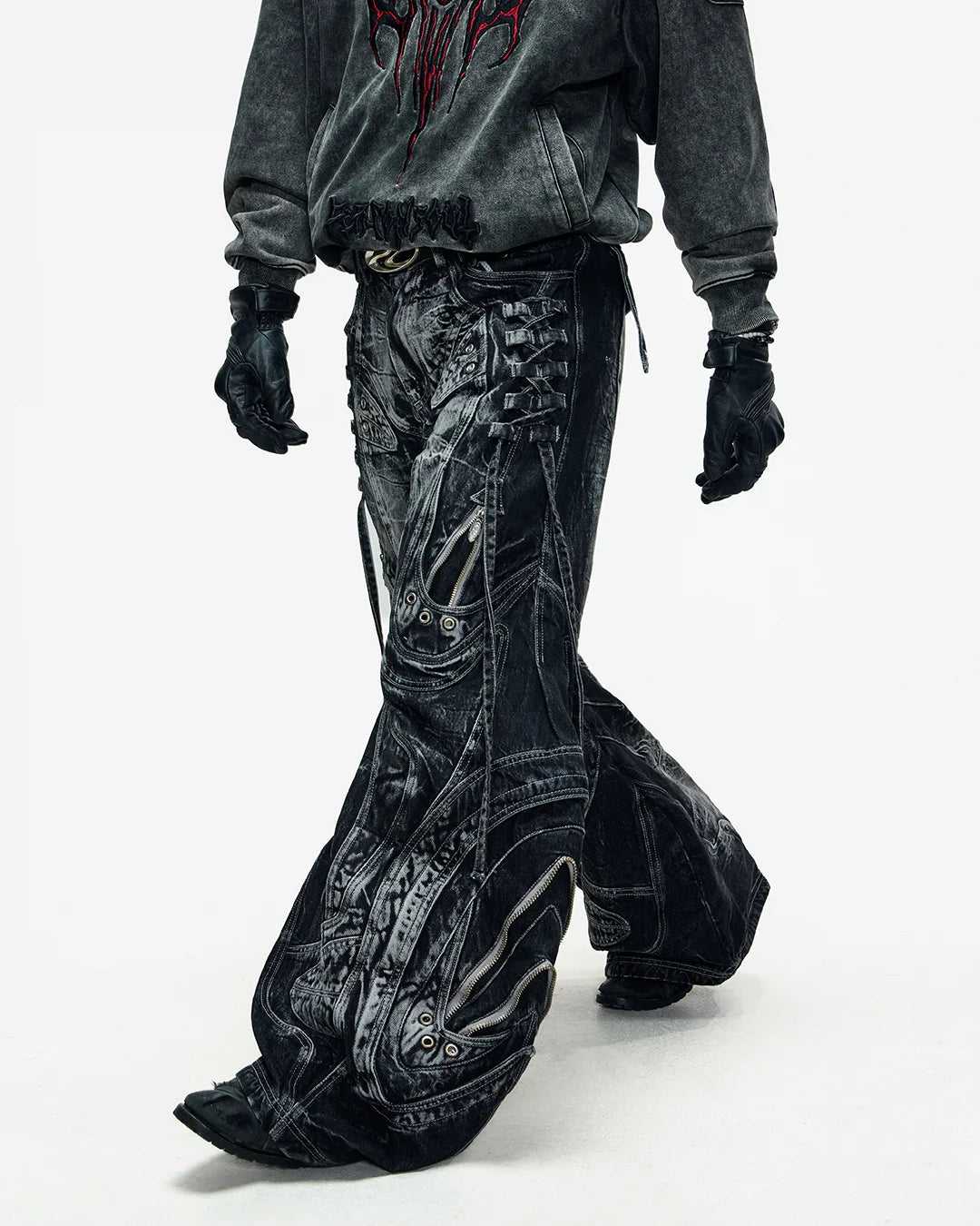 Deconstructed Exaggerated Flared Patchwork Jeans In Black