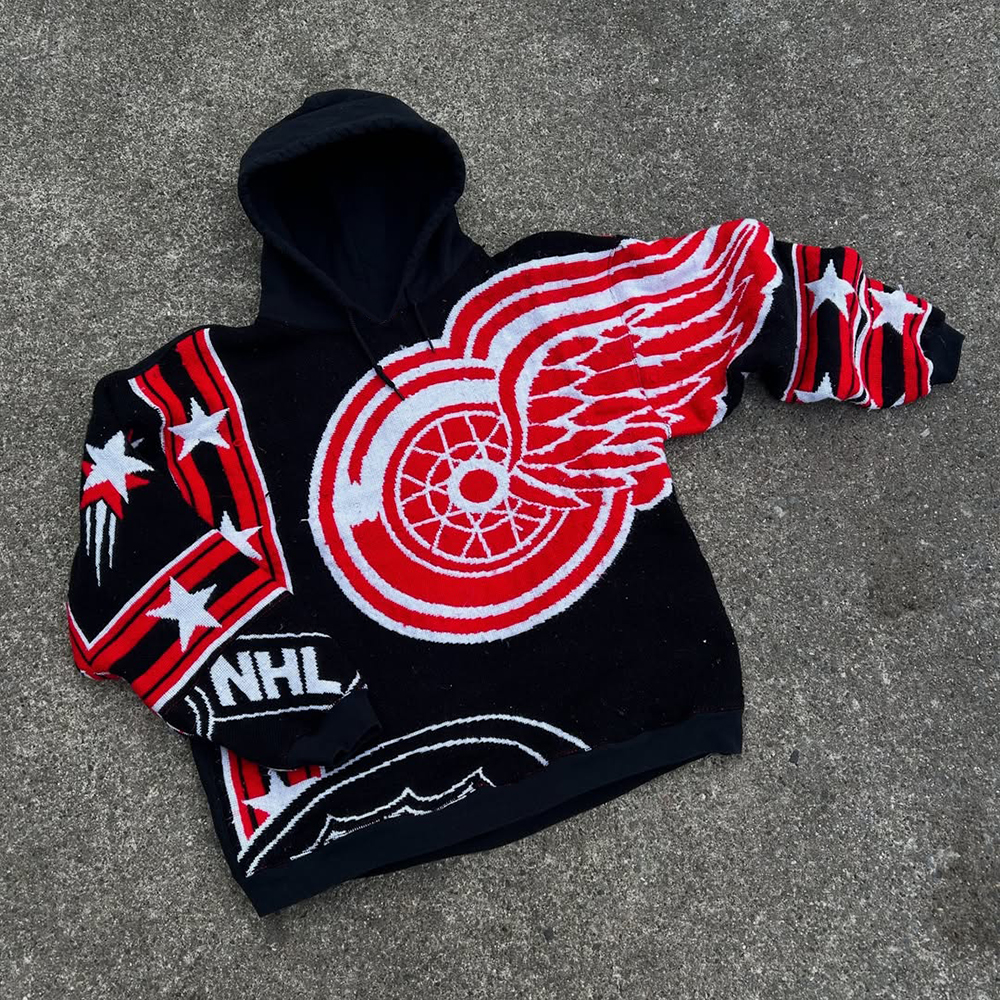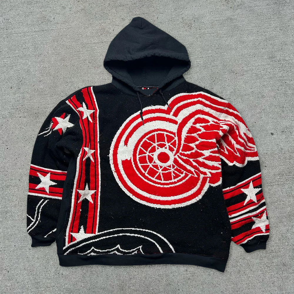 Detroit Red Print Long Sleeve Hoodies