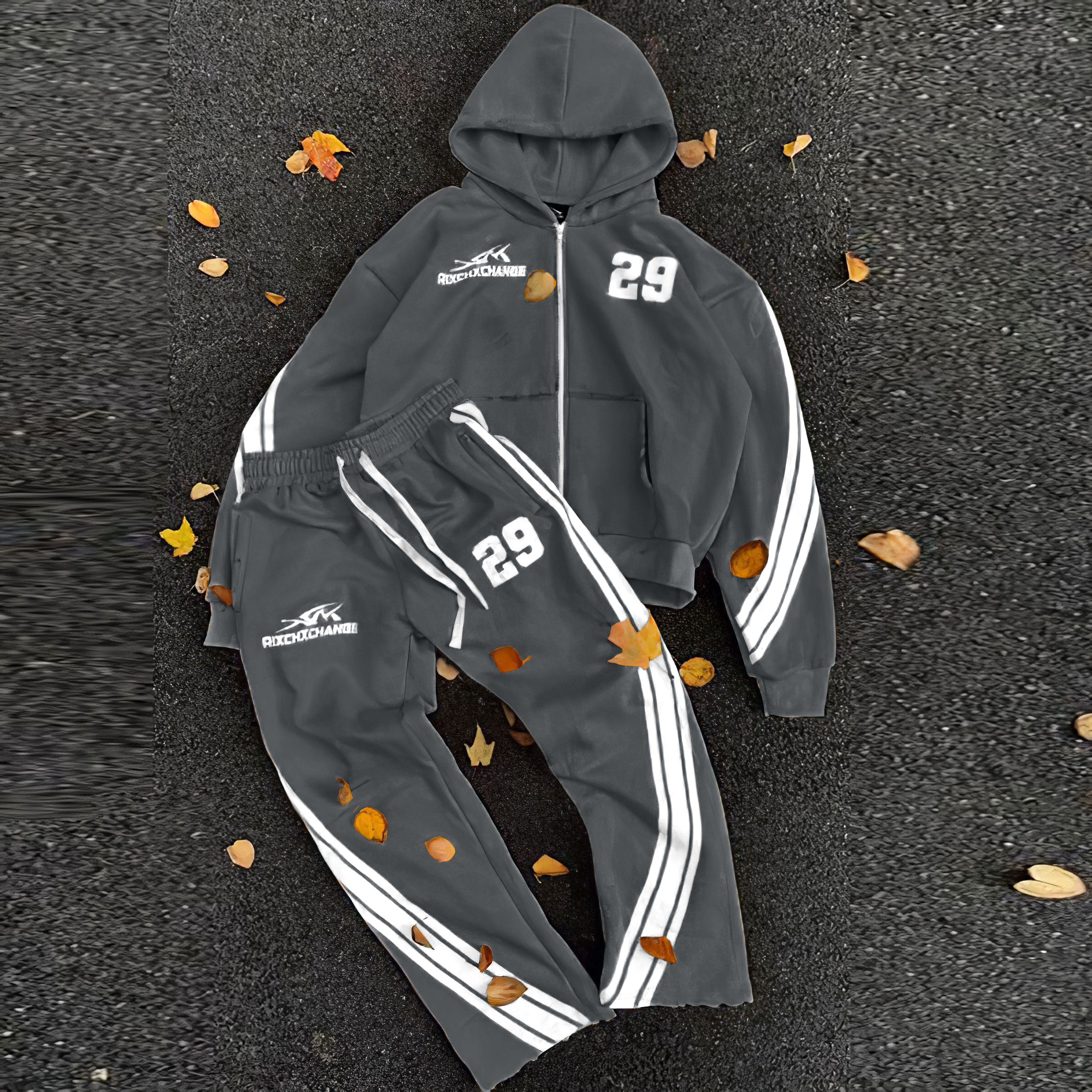 Digital Stripe Zip-Up Hoodie Pants Two-Piece Set