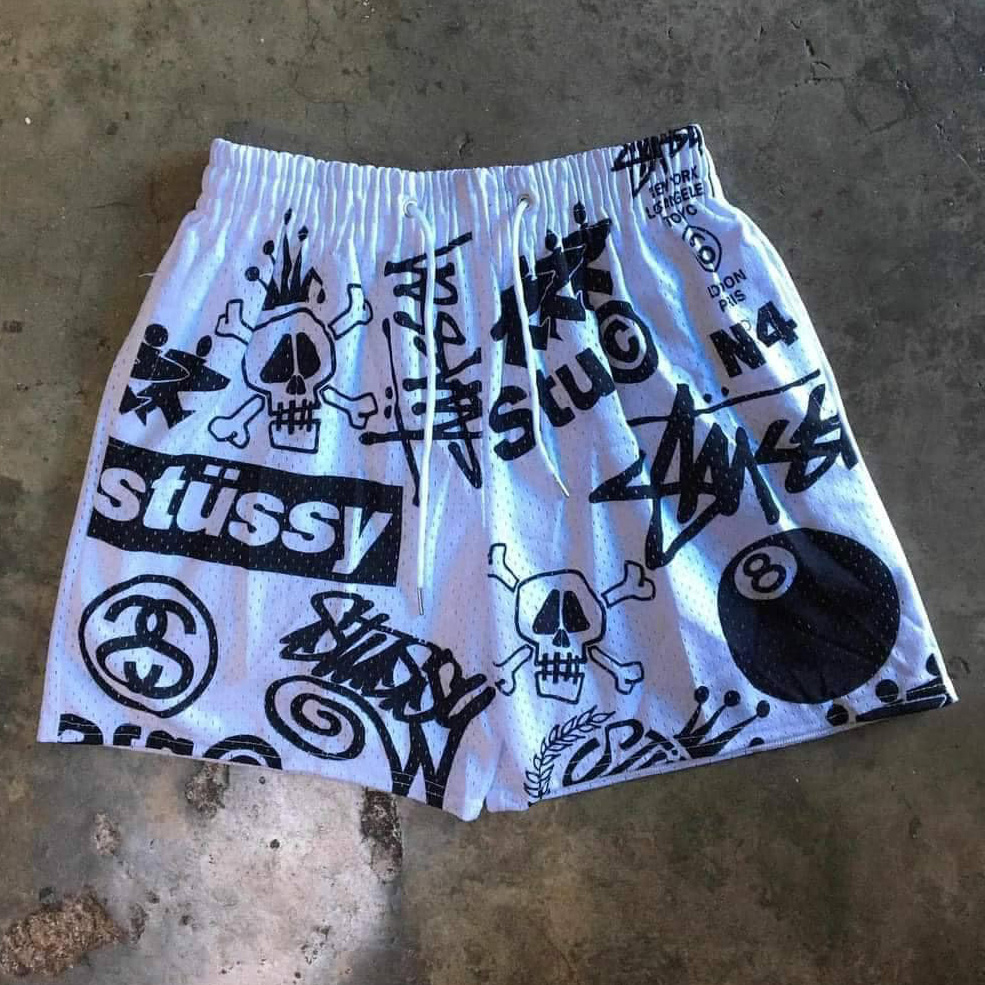 Fashion Multi-element Print Mesh Sports Shorts