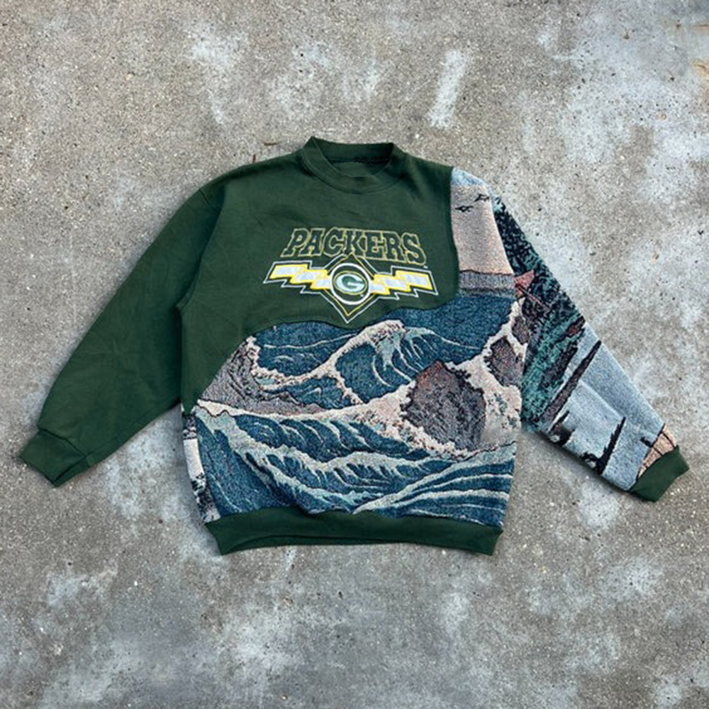 Fashion Packers Print Patchwork Long Sleeve Sweatshirt