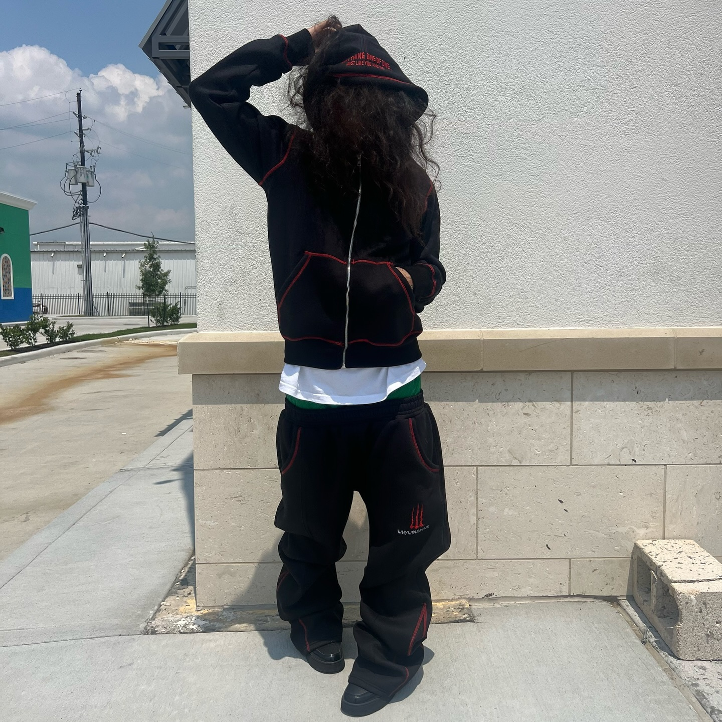 Fashion solid color topstitched sweatshirt suit