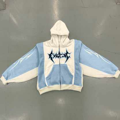Fashionable Contrast Color Print Long Sleeve Zipper Hoodies