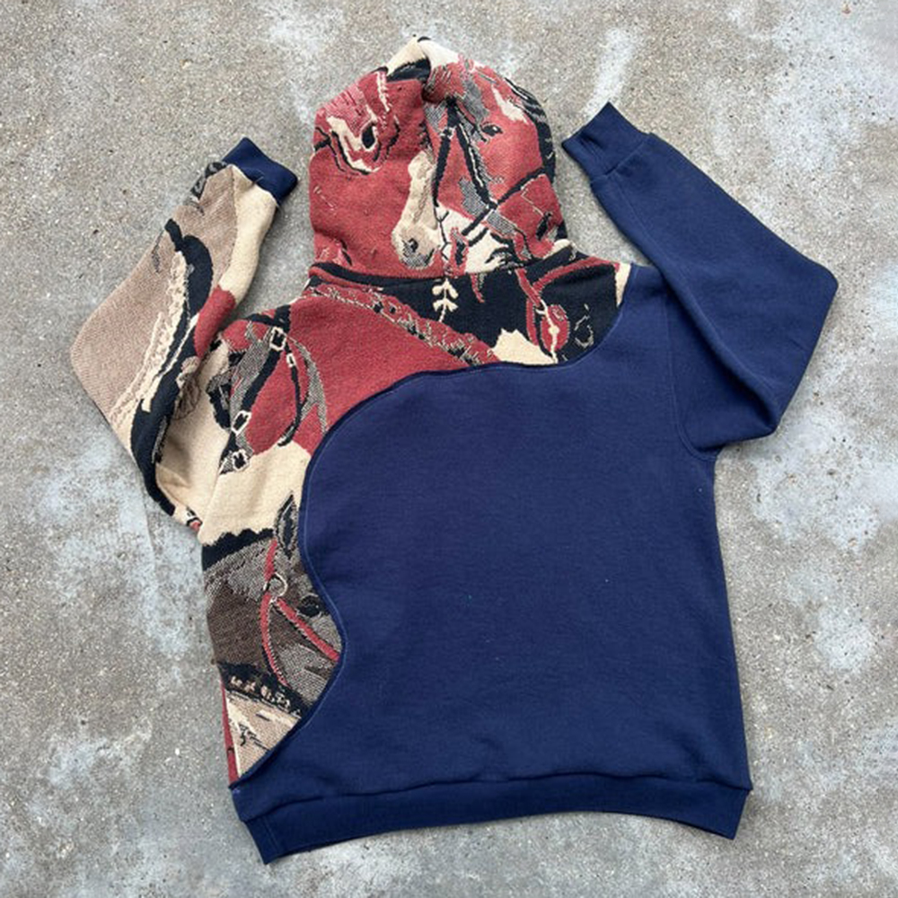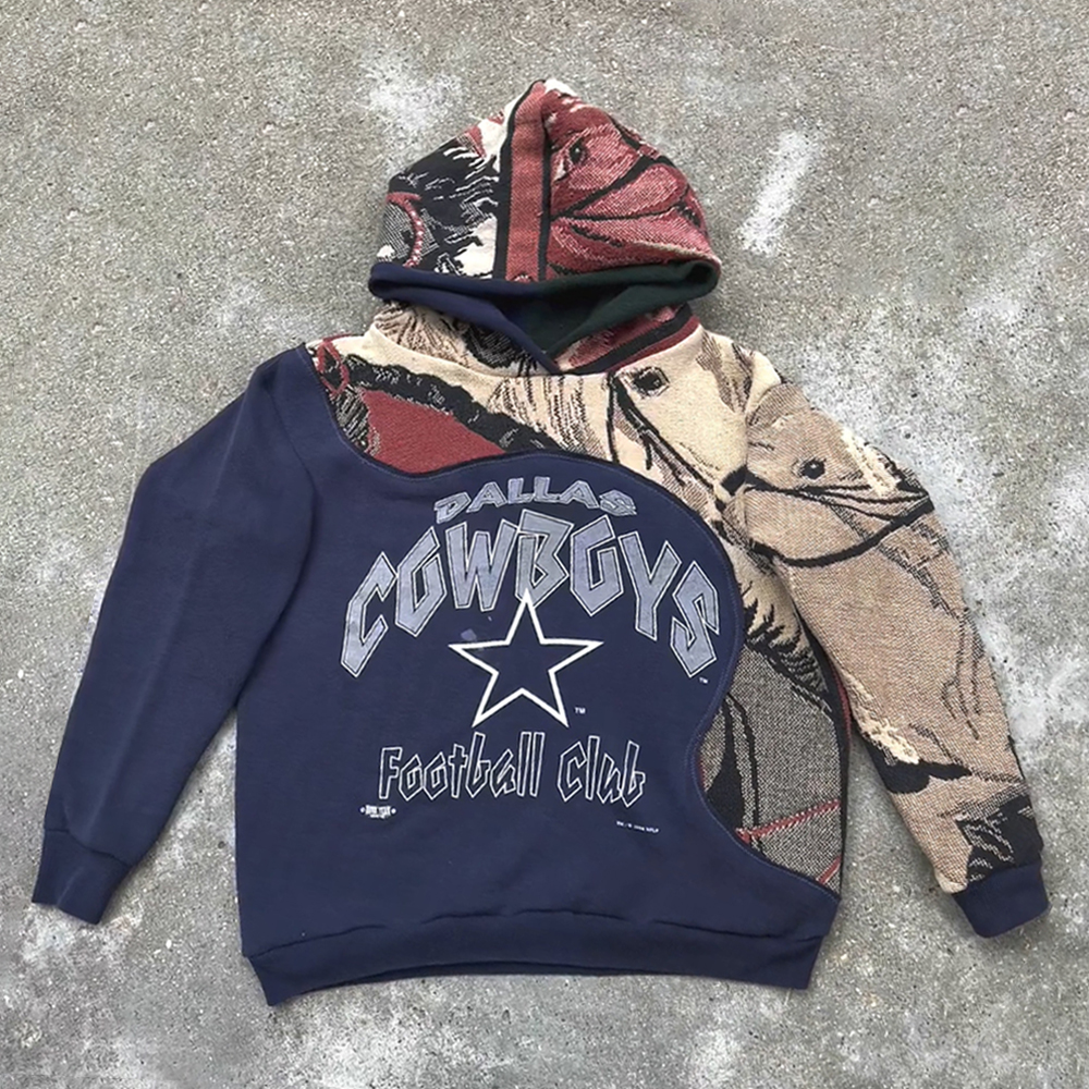 Fashionable Cowboys Print Patchwork Long Sleeve Hoodies