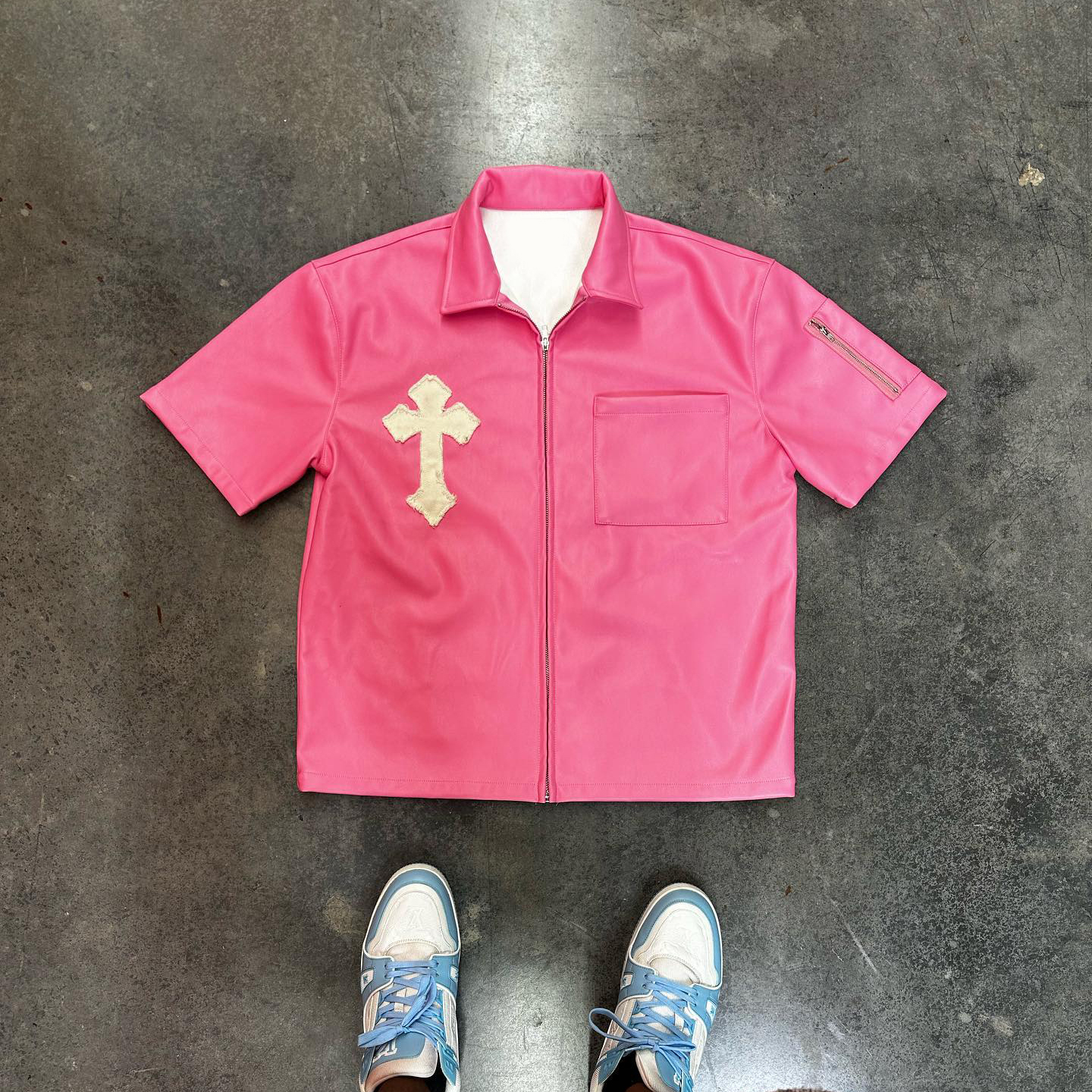 Fashionable personalized pu leather zipper shirt