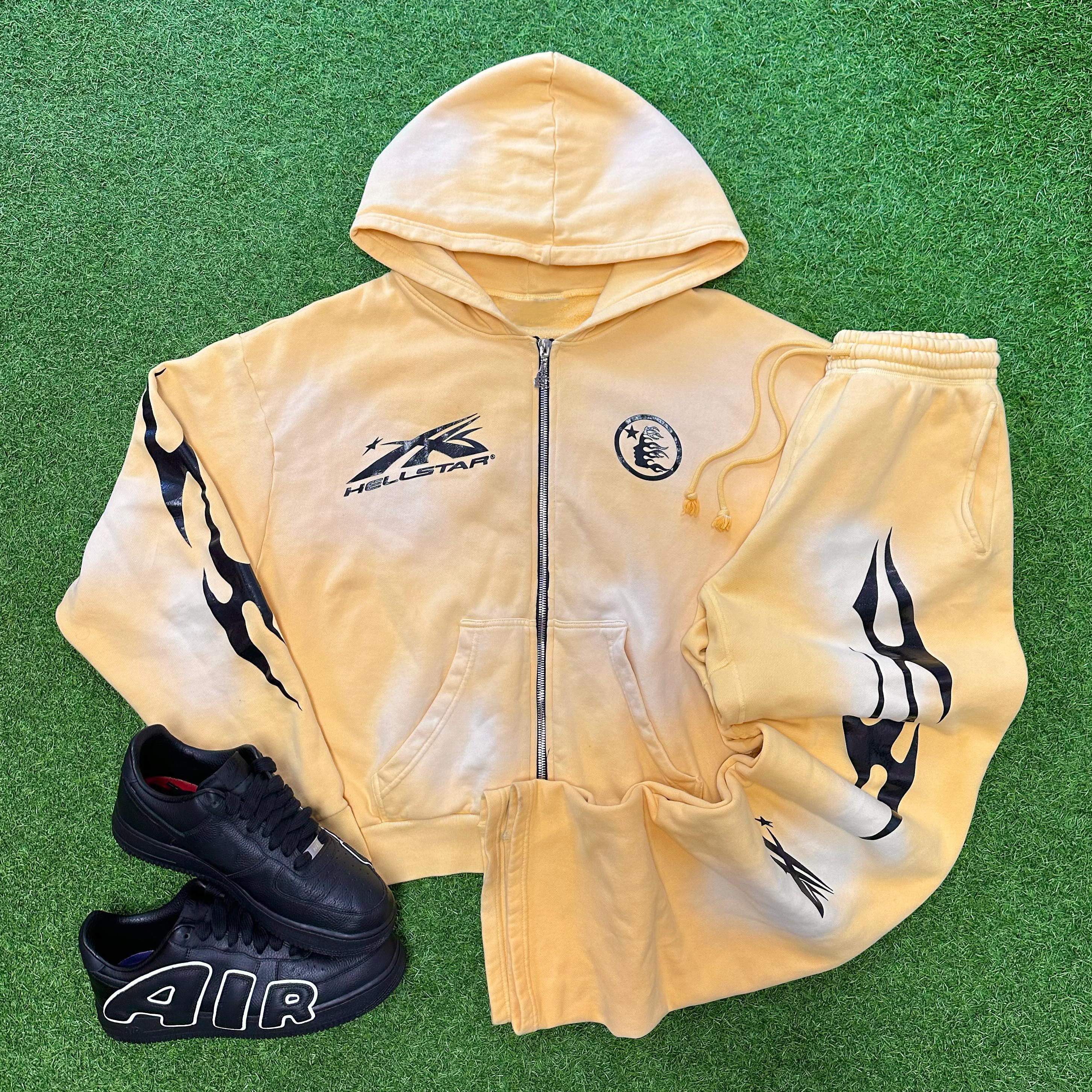 Flame Letters Print Two Piece Hoodie Set
