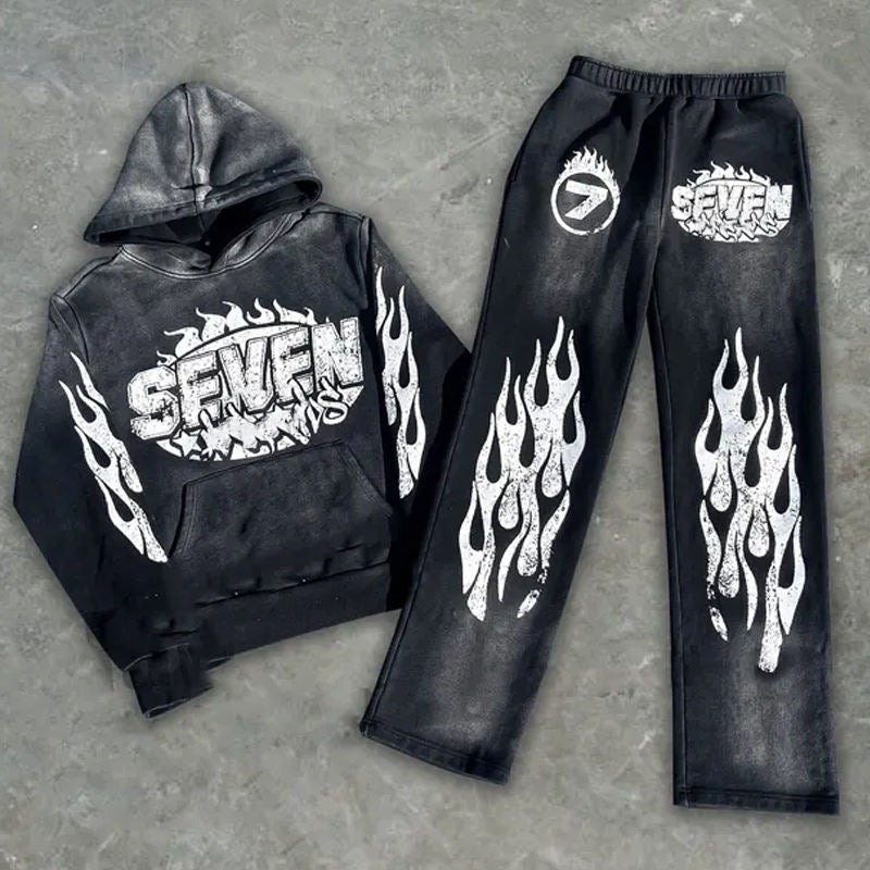 Flame Seven Casual Street Retro Washed Two-piece Suit