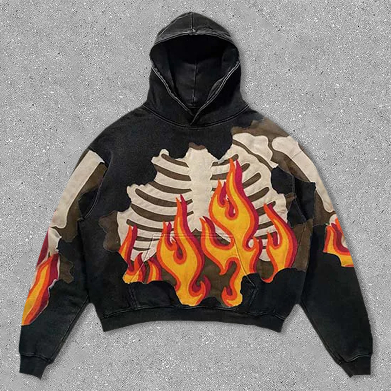 flame skeleton print hoodie