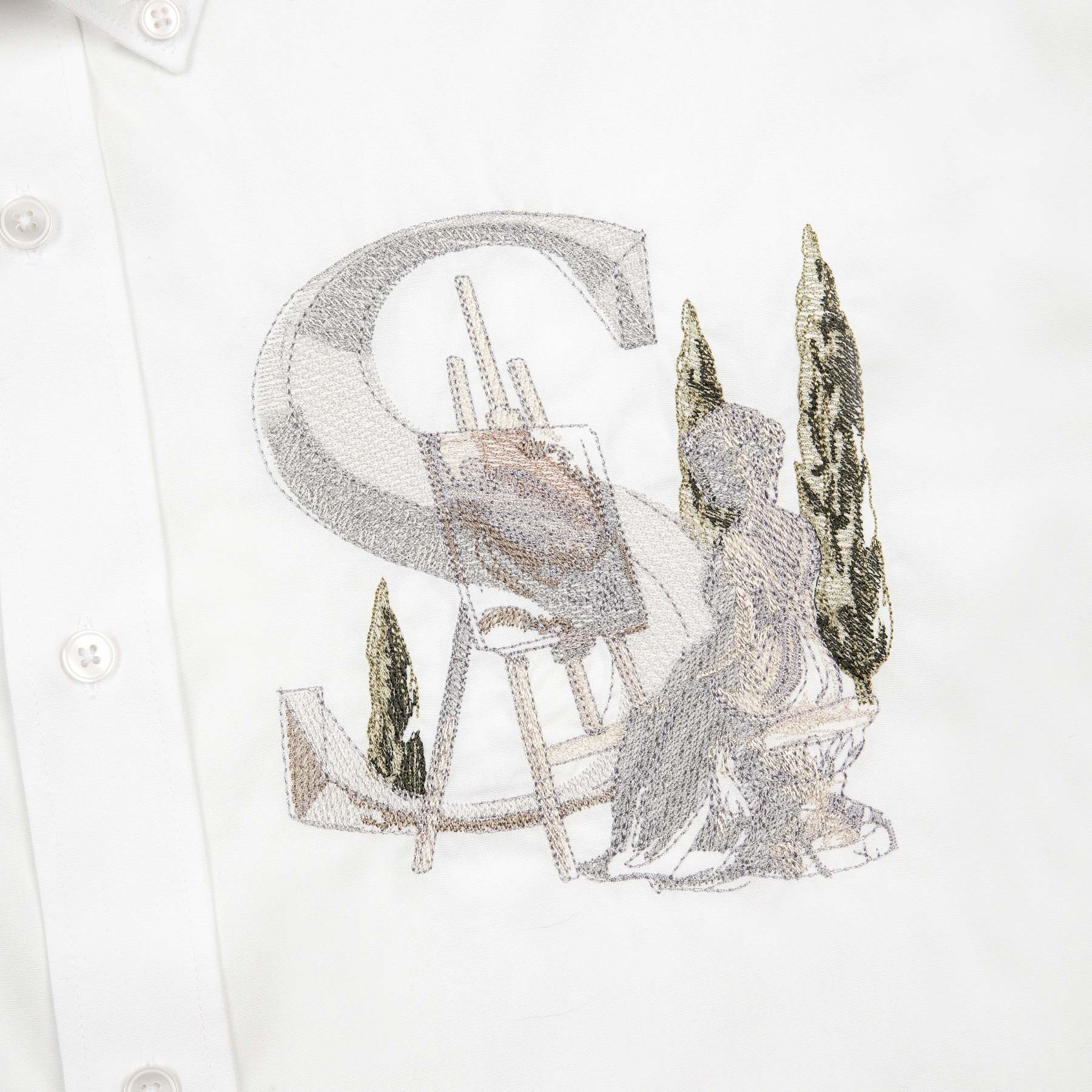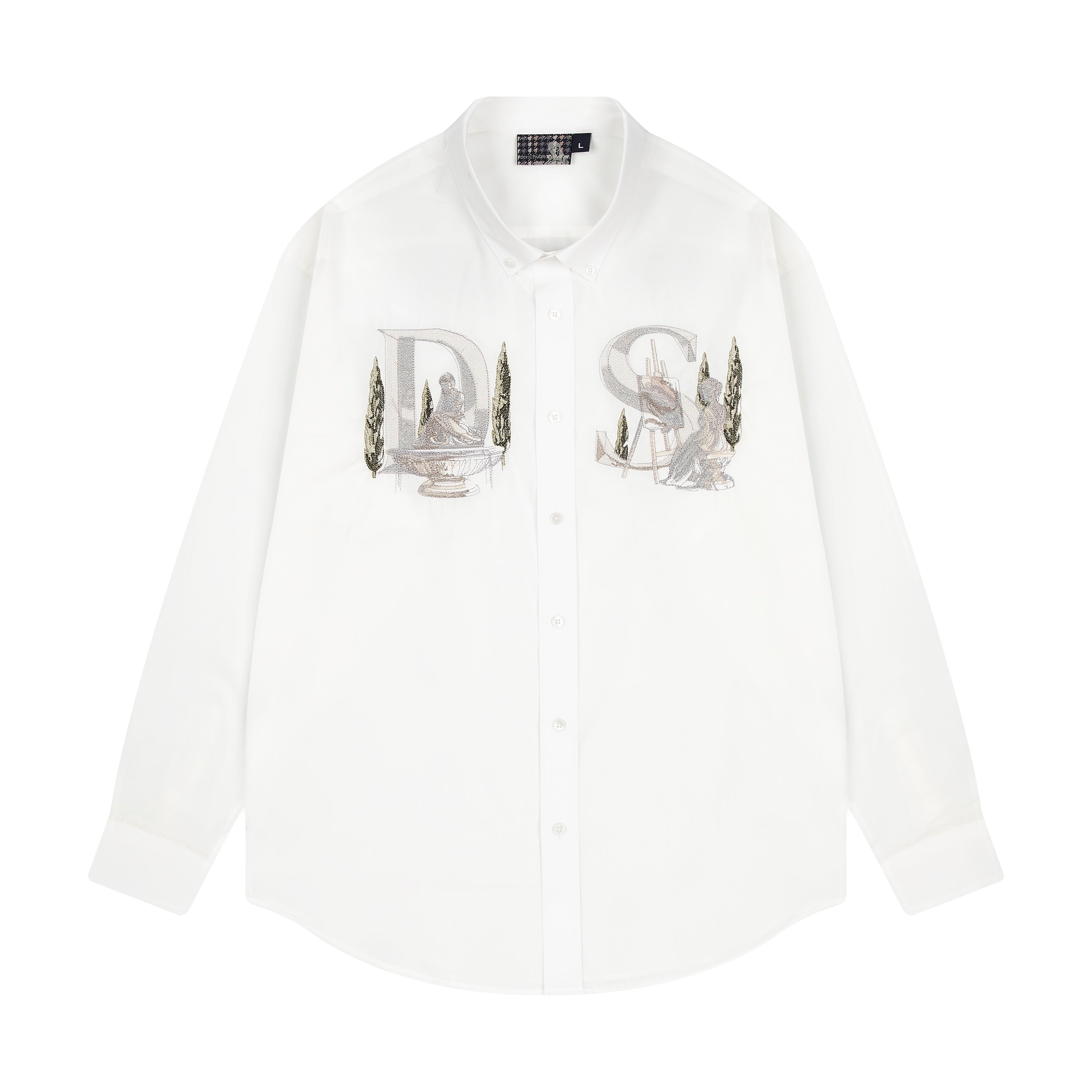 100% cotton / embroidery on front / custom buttons / curved hem / relaxed fit / fits true to size