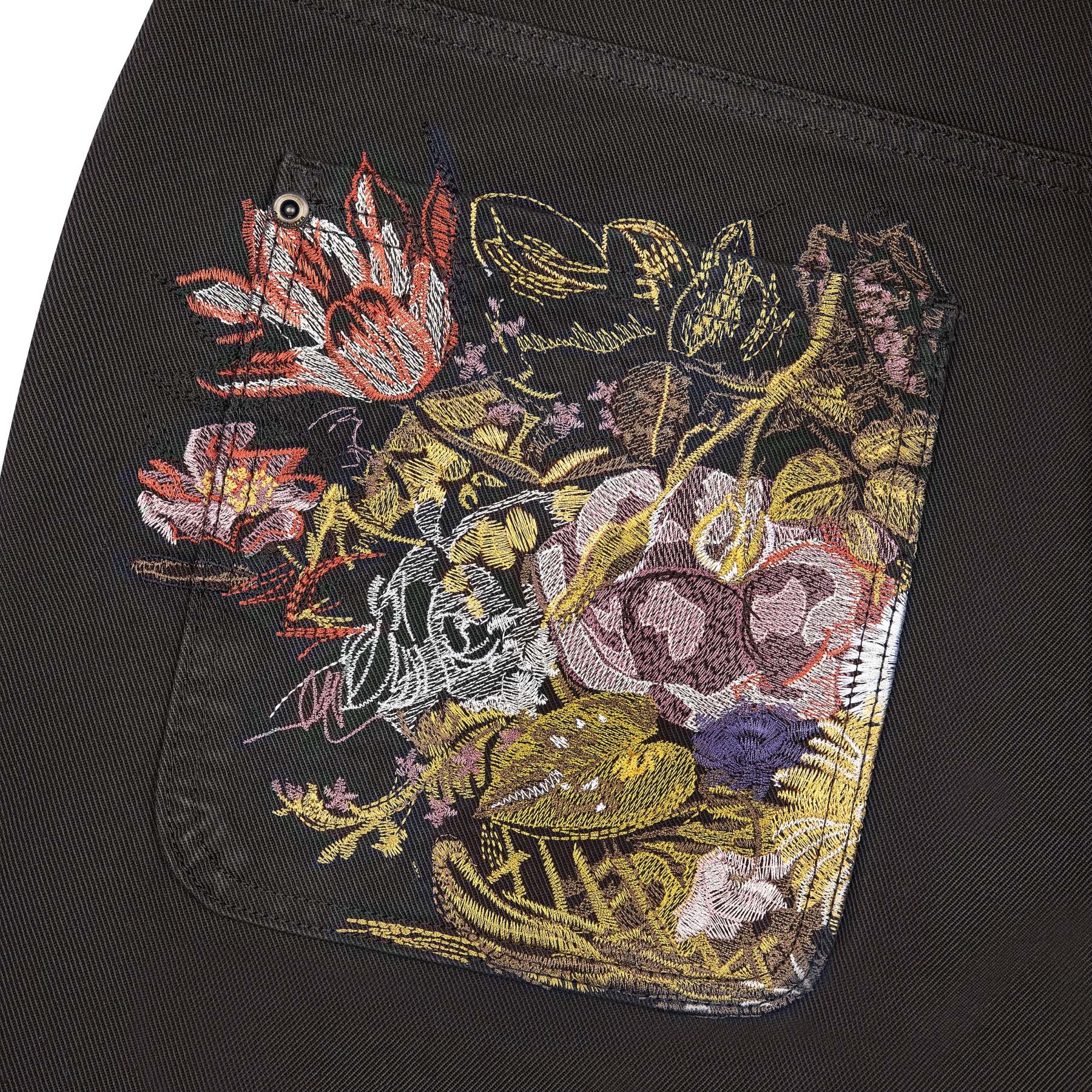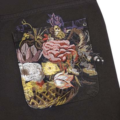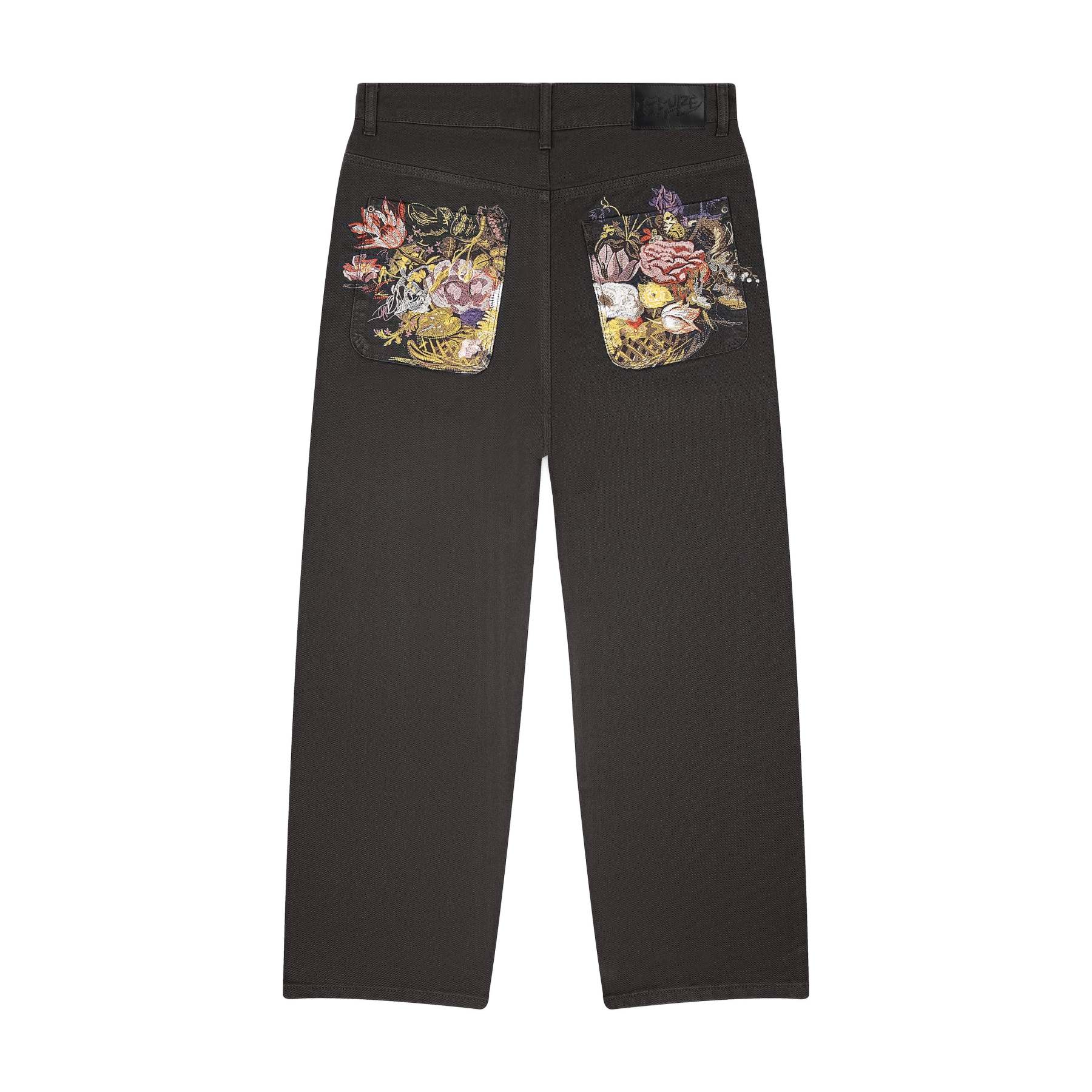 13,5oz denim / 100% cotton / embroidery on back pockets / embroidered leather patch / custom button / baggy fit / fits true to size