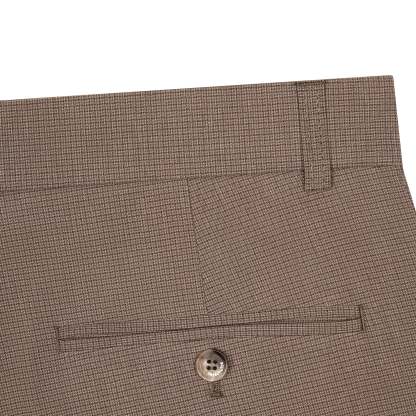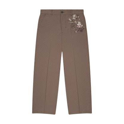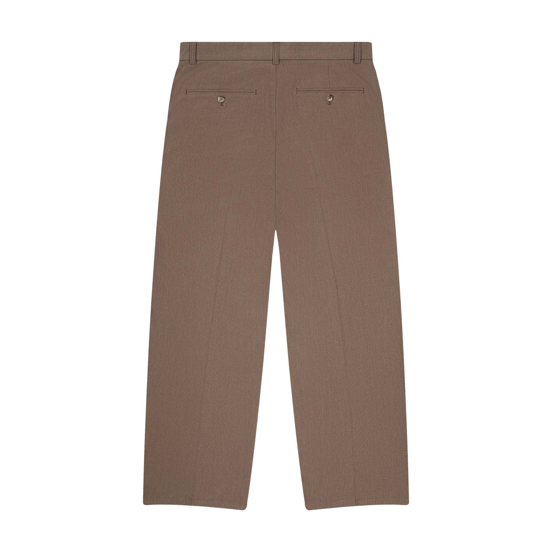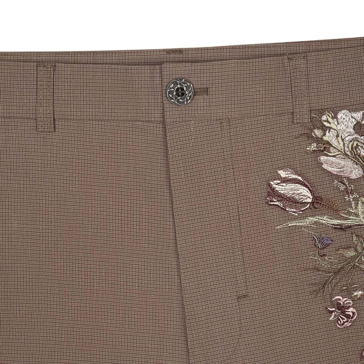 190 gsm plaid patterned gabardine / 73% cotton 25% polyester 2% lycra / embroidery on front / custom buttons / straight fit / fits true to size