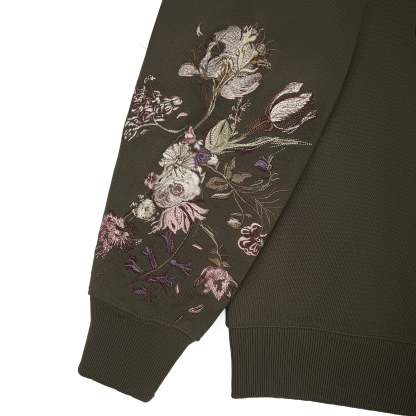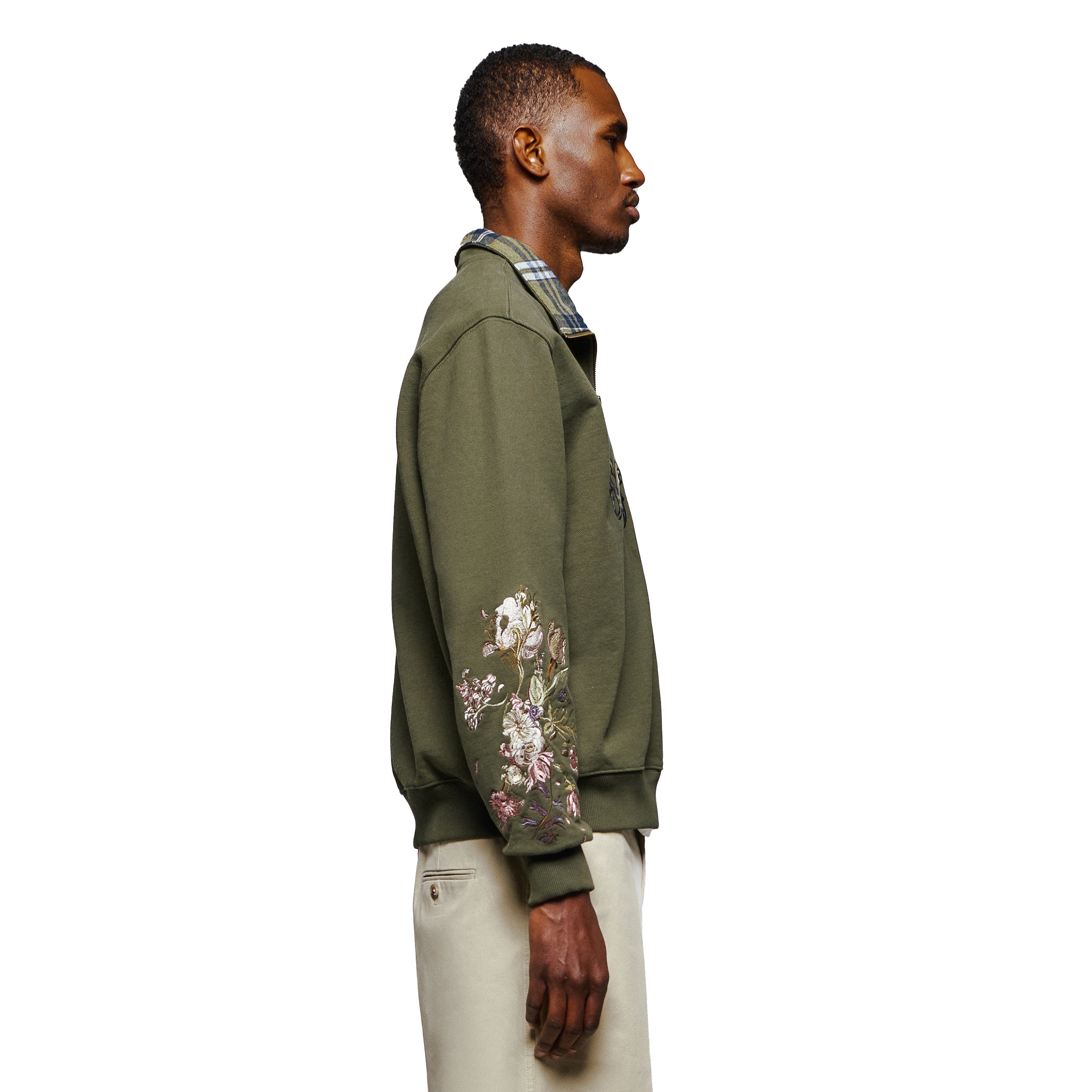 480gsm / 100% preshrunk cotton / collar lining from plaid patterned fabric / embroidery with appliqué made from plaid patterned fabric on front / embroidery on sleeve / with YKK zipper on collar / fits true to size