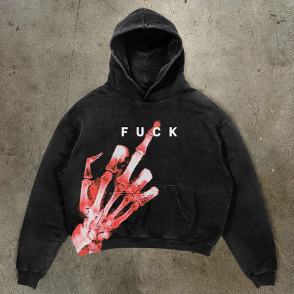 Gesture & Letters Print Long Sleeve Hoodies