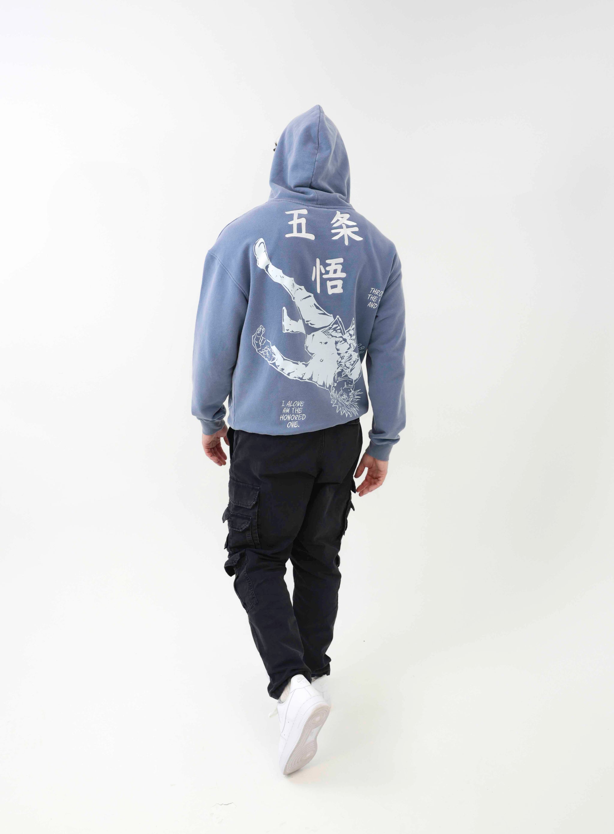The JJK Gojo Hoodie is crafted from luxury heavyweight cotton, with a relaxed fit.