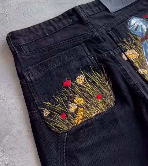 Fashionable Street Embroidered Jeans