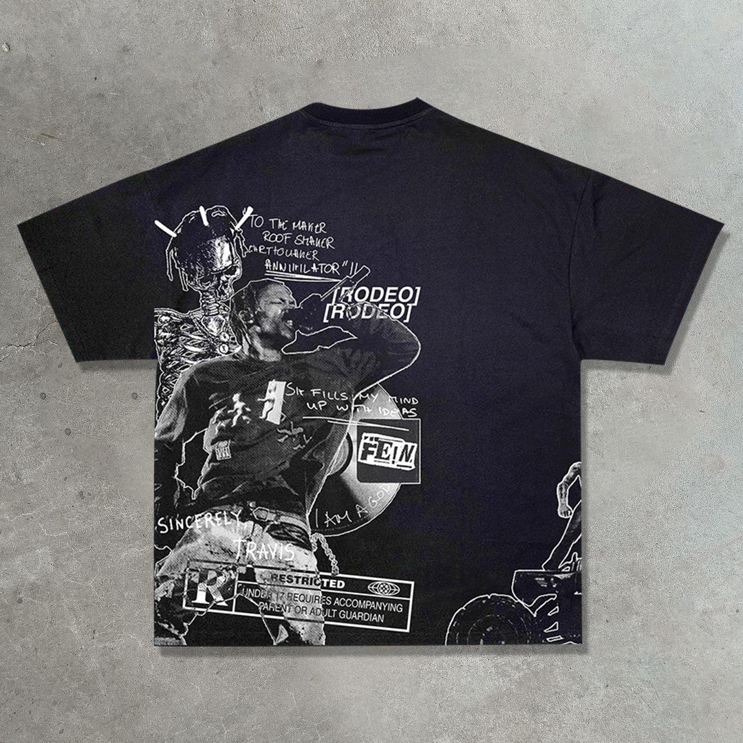 Hip-hop rap casual street retro print T-shirt