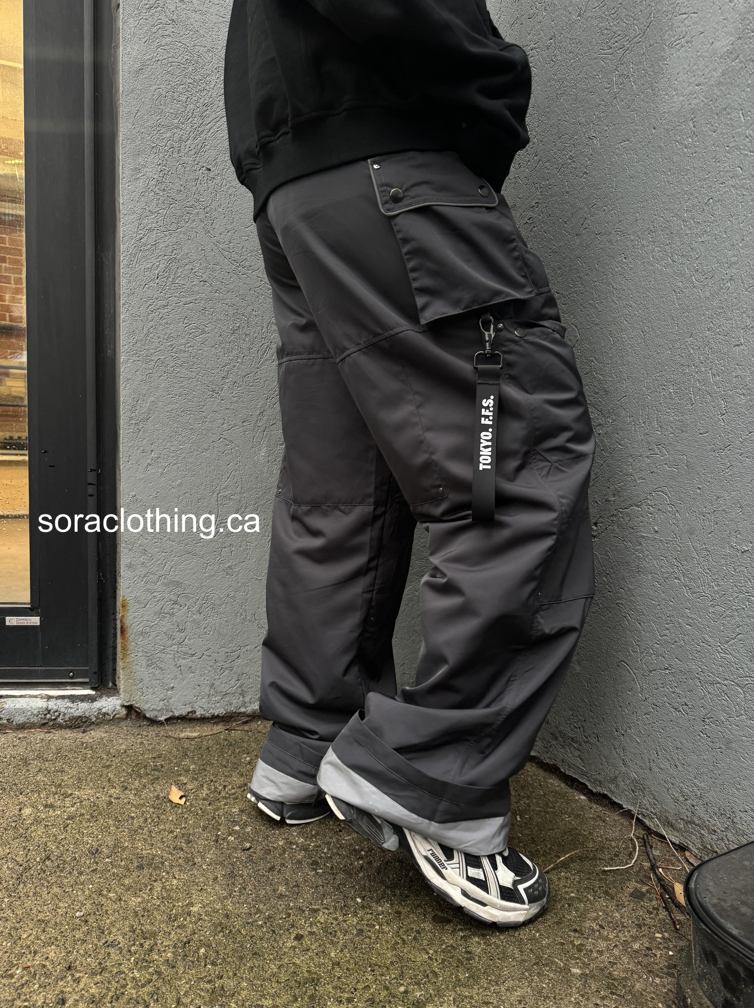 These pants are made of polyester with button pockets on each side. Reflective lines are on the pockets and the bottom of the pants. Embroideries on the front end back. Comes with the keychains on both sides.