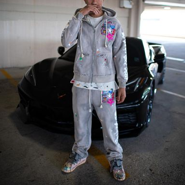 Ink-splashed print hoodie and casual pants set