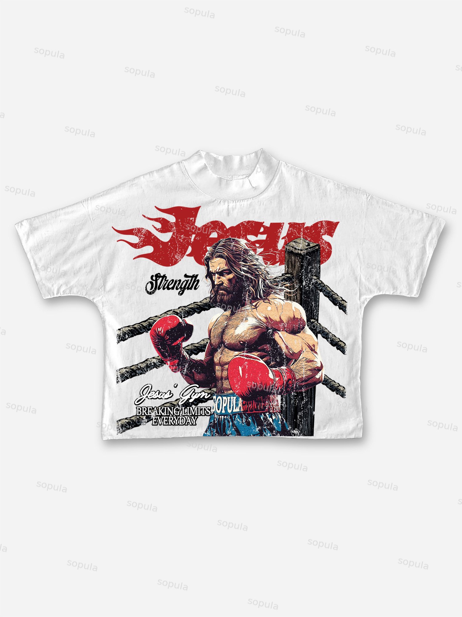Jesus' Gym Boxer Graphic Print Cropped T-shirt
