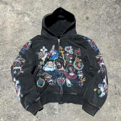 Jesus Multi-element Print Long Sleeve Zipper Hoodies