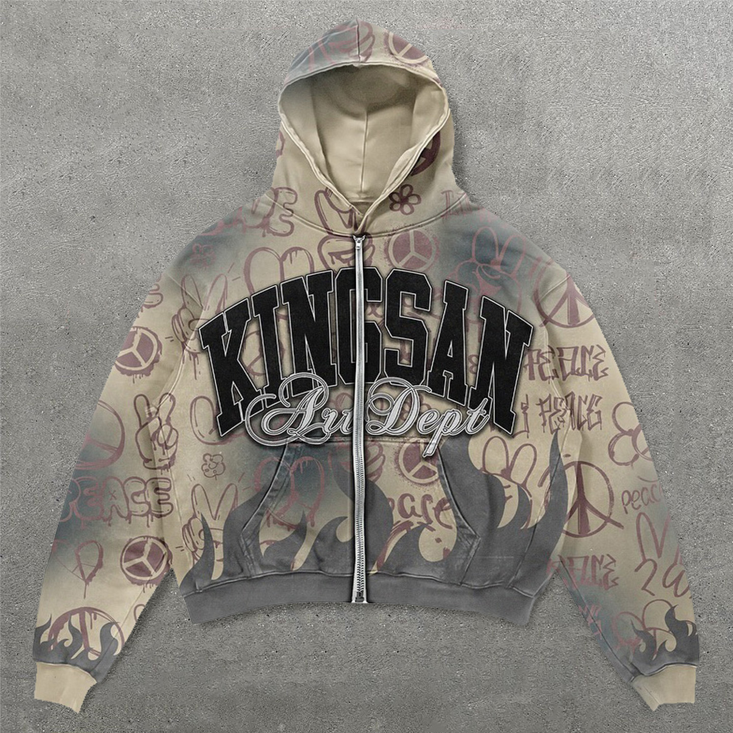 King San Print Long Sleeve Zipper Hoodies