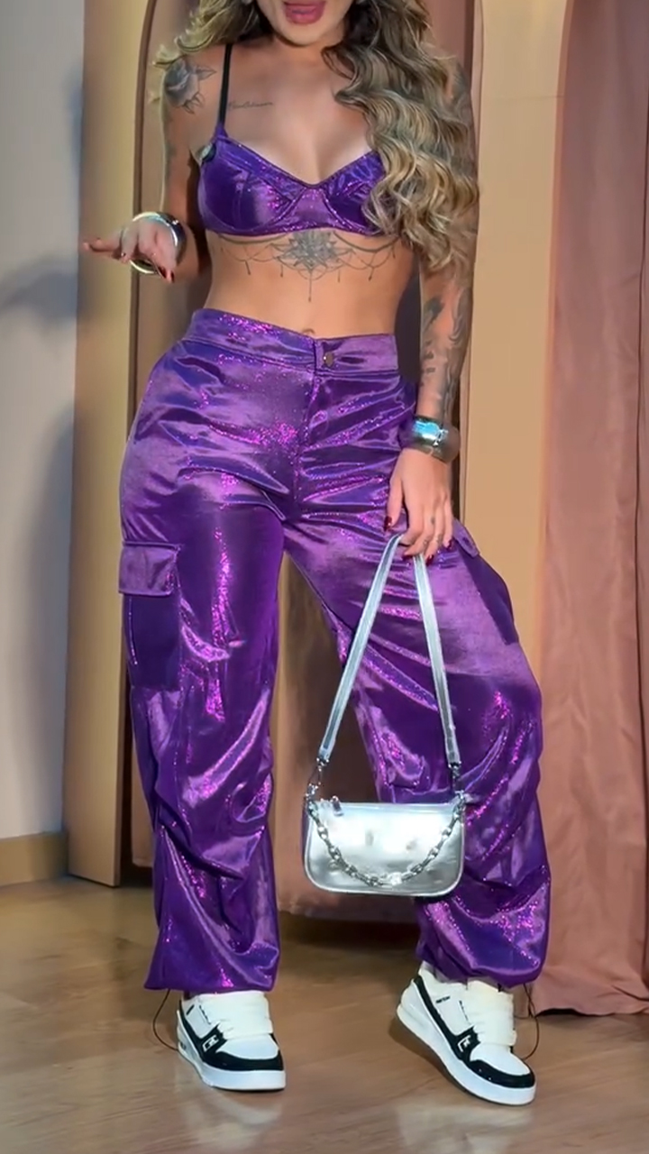 Ladies' Spaghetti Strap Strapless Top+pants Sexy Casual Suit