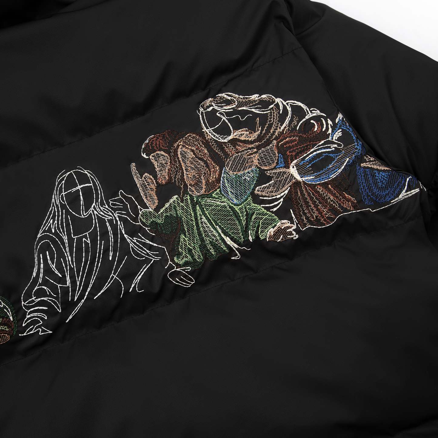 100% polyester / micro gel filling / embroidery on front and back / adjustable waistband / fits true to size