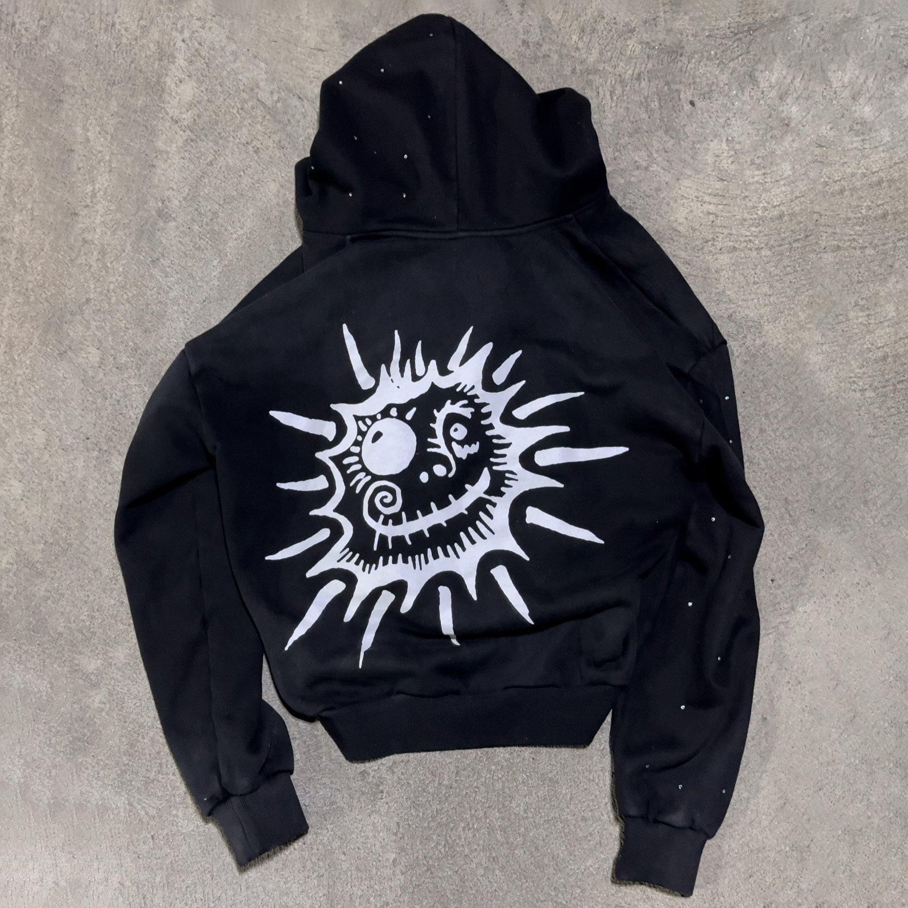 Letters Cartoon Print Long Sleeve Zipper Hoodies