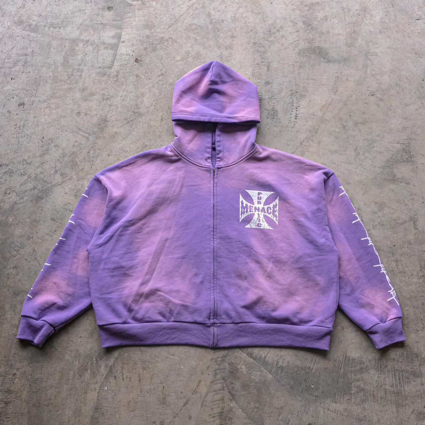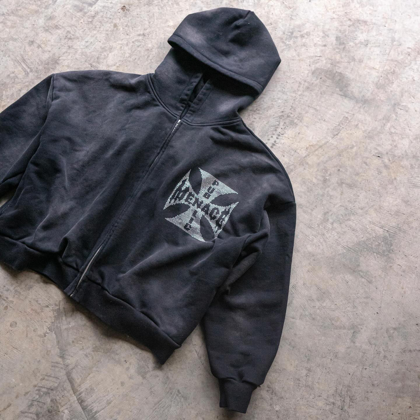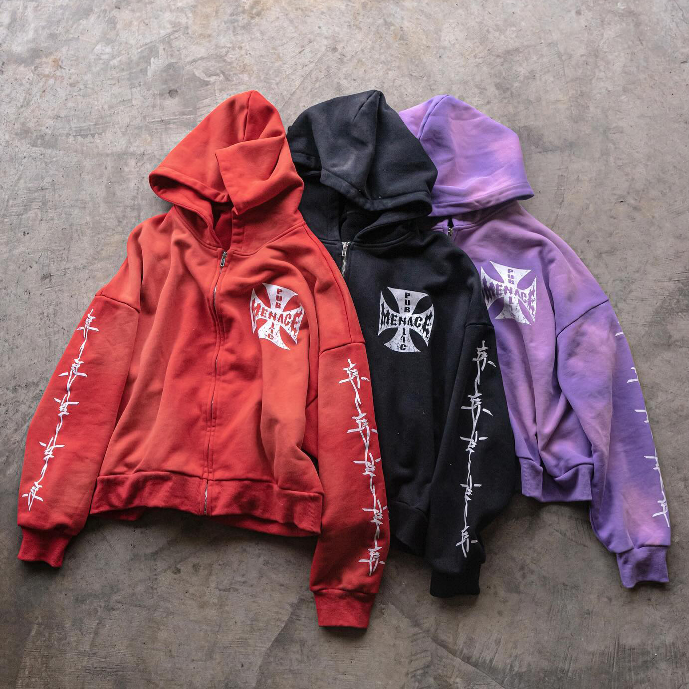 Letters Cross Print Long Sleeve Zipper Hoodies