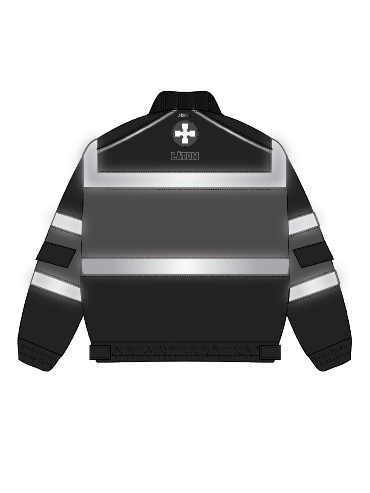 Heavyweight winter insulated jacket with embroideries on the front, back, and sleeves and a rubber patch on the backThis Jacket is made of 100% Polyester. Soft and comfortable, warm and breathable. Reflective lines reflect light and glow in the dark. Comes with backpack straps on the inside.