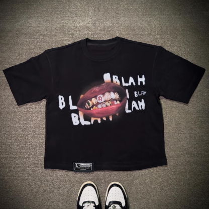 Lips Letters Print Short Sleeve T-shirt