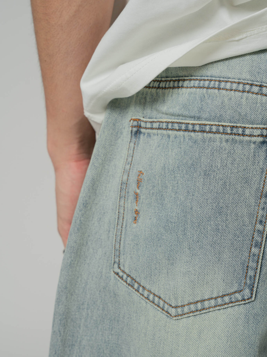 Took us long enough to finally release DRMERS denim pieces — made with a flattering silhouette in mind for you to pair it with any top. Faded wash throughout with subtle contrast details shown through the stitching and pocket embroidery.